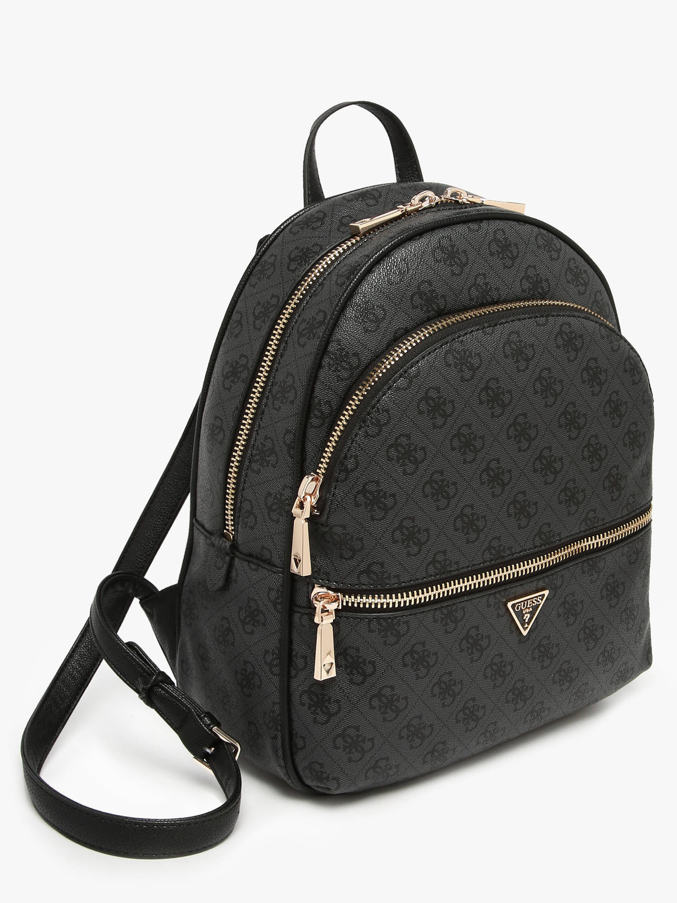 The MANHATTAN Guess backpack, crafted from coated canvas, perfectly combines urban style and functionality. Featuring two zippered front pockets and a main compartment, it provides optimal space for organizing essentials, with an inner pocket and a zip pocket for easy access to personal items. Adjustable shoulder straps and a 5 cm top handle ensure comfortable wear on your back, suitable for everyday activities, from work to city outings. Lightweight and practical, this backpack stands out with modern lines and a refined design, adding a dynamic and trendy touch to your look. Versatile and durable, the MANHATTAN is perfect for those seeking a stylish yet practical accessory.