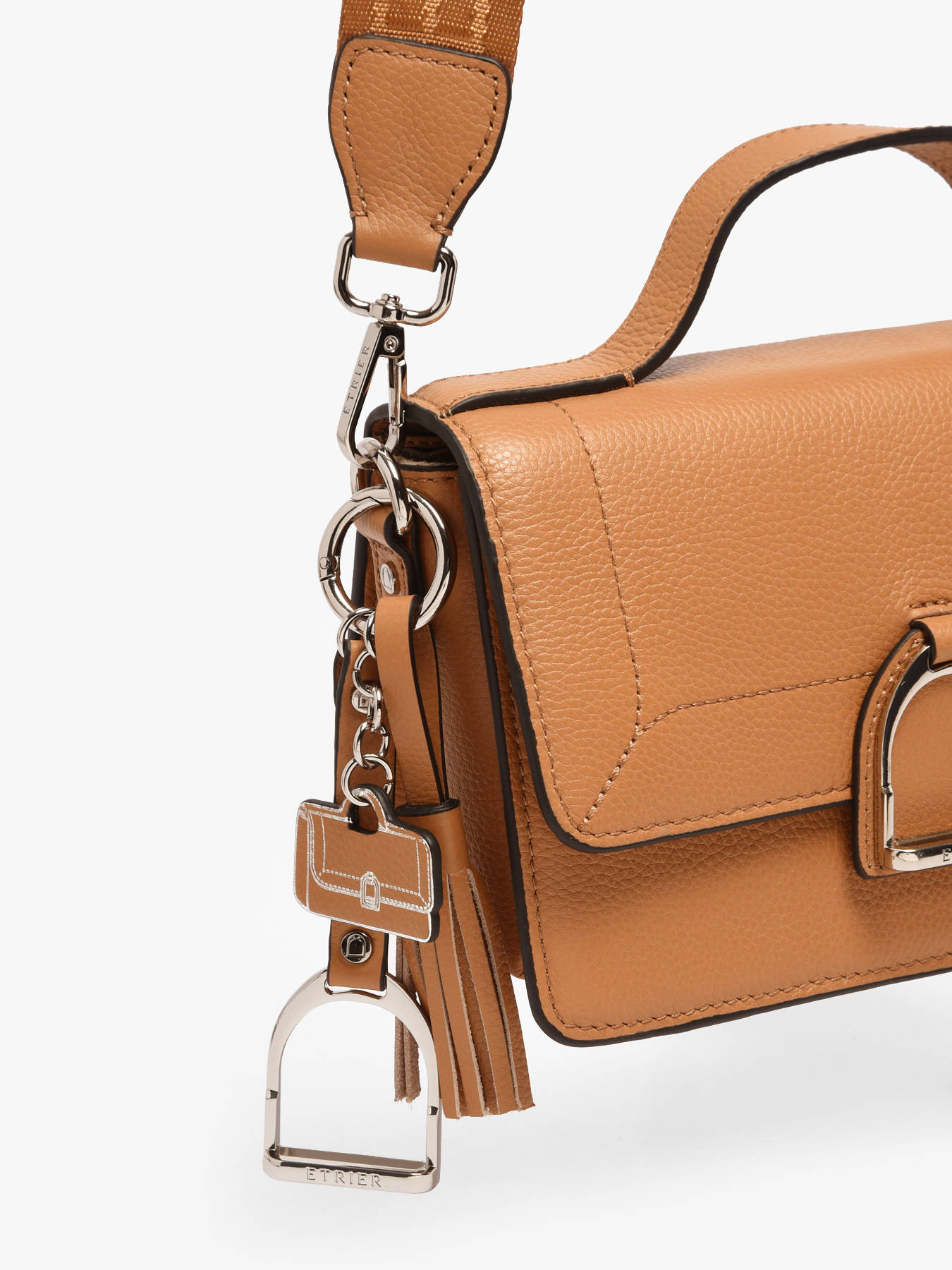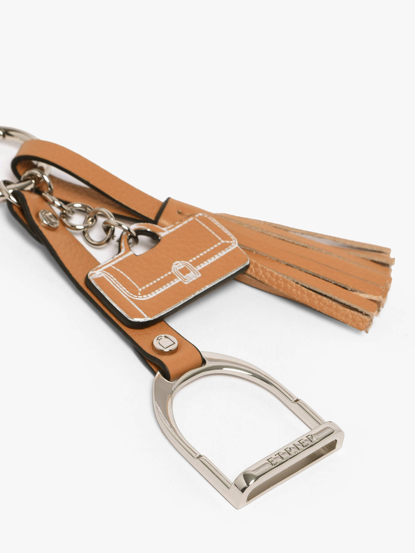 The ETRIER Altesse bag handle charm is an elegant accessory featuring the iconic Altesse bag in miniature. Adorned with a soft leather pompom, it adds a refined touch to your keys or bags.