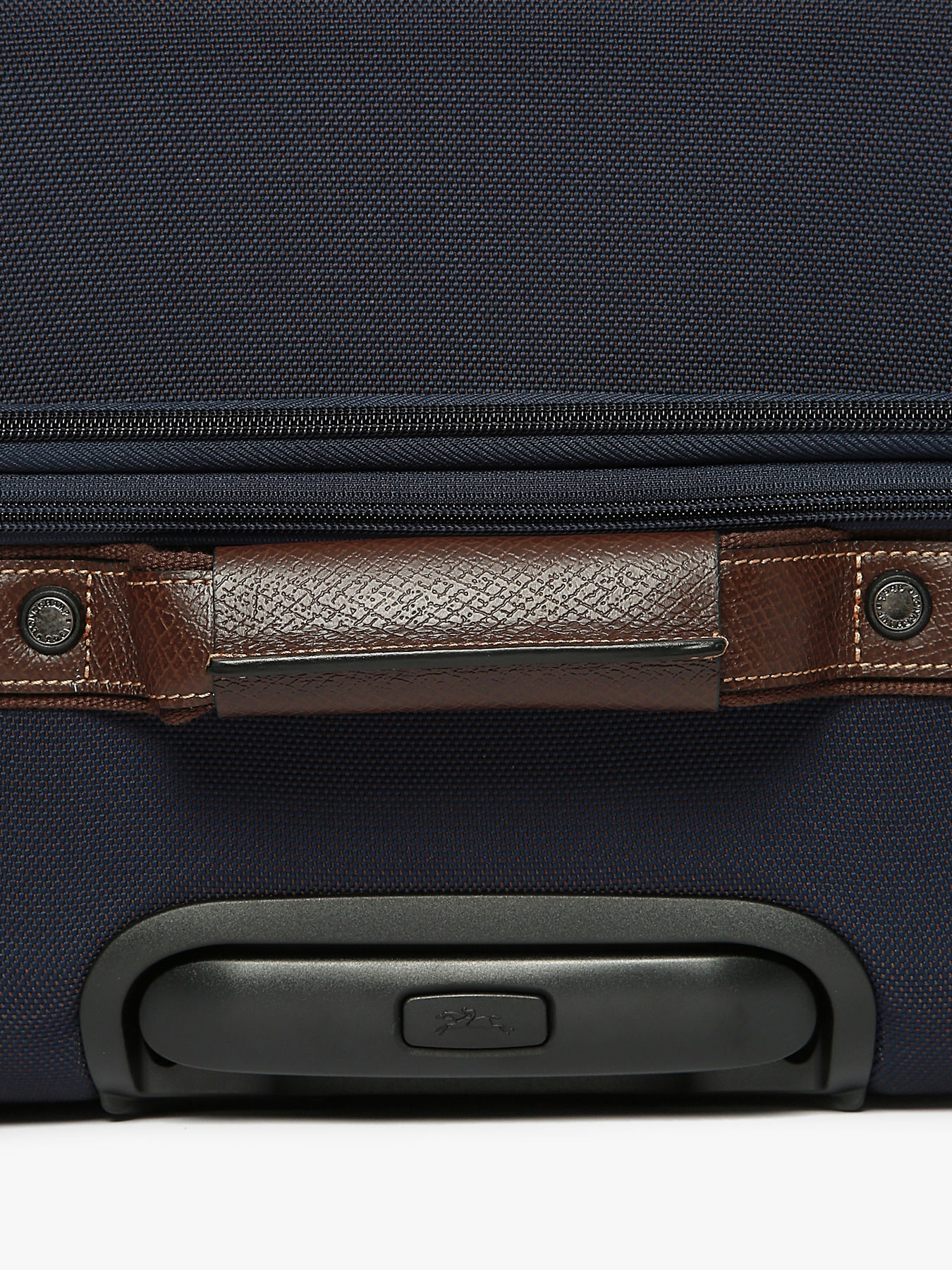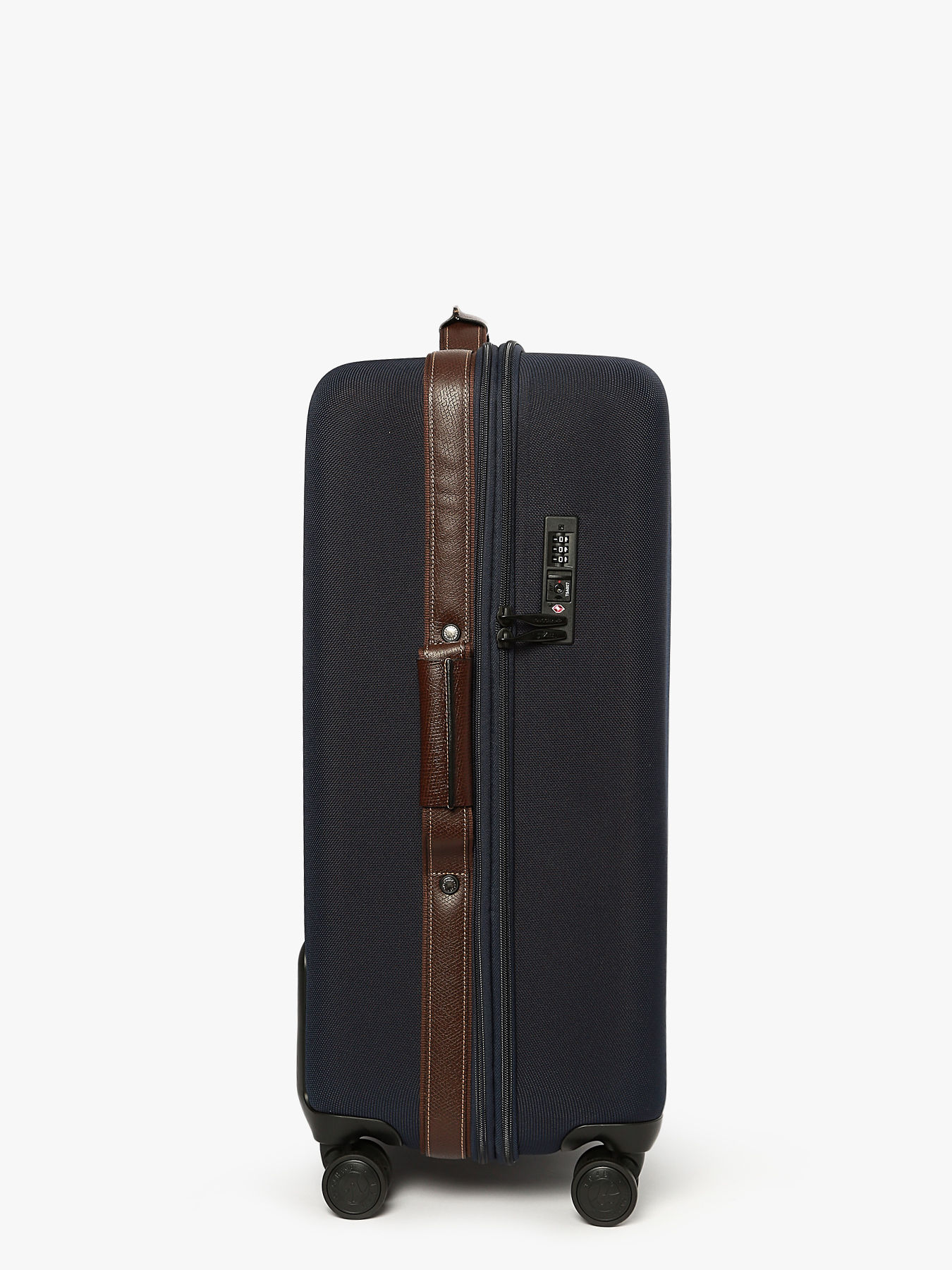 Made from designer thermoformed canvas, this elegant Longchamp suitcase is crafted in an innovative style for long-lasting durability. Enjoy the comfort of its adjustable telescopic handle, the security of its TSA padlock and an expandable gusset for last-minute purchases. BOXFORD is the emblematic line of the House, embodying discreet elegance. Sober and distinctive, its men's and business bags and luggage models feature rectangular Longchamp branding embossed in the leather and contrasting stitching for a refined look, while the two-tone canvas is trimmed with Russian leather for a rich embossed effect.