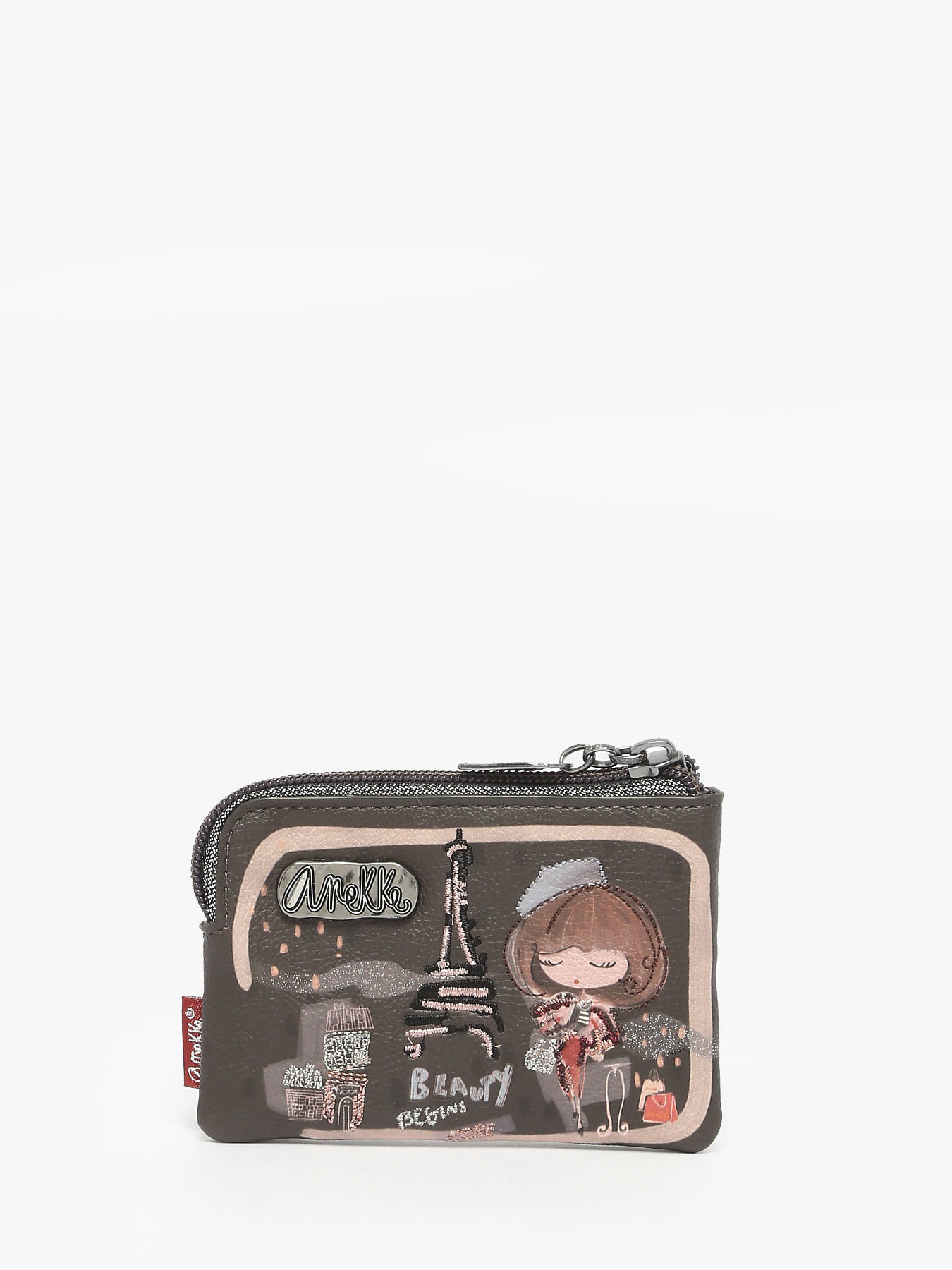 The Anekke coin purse perfectly combines style and practicality for everyday use. Made of durable coated canvas, it protects your belongings while showcasing a refined, elegant design. It features a main zippered pocket to secure coins and bills, plus two front pockets for easy access to essentials. The polyester interior ensures lightness and long-lasting durability, making it comfortable for daily use. Compact and functional, this coin purse fits easily in a handbag or can be carried alone for quick outings, keeping your items organized. Its unique aesthetic, reflecting Anekke’s creative universe, adds a touch of charm and elegance to everyday life while remaining versatile for all occasions. Ideal for personal use or as a gift, it impresses with its quality and charming design.
