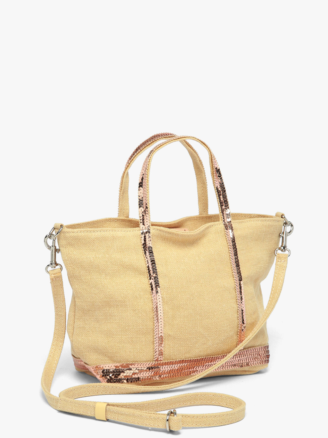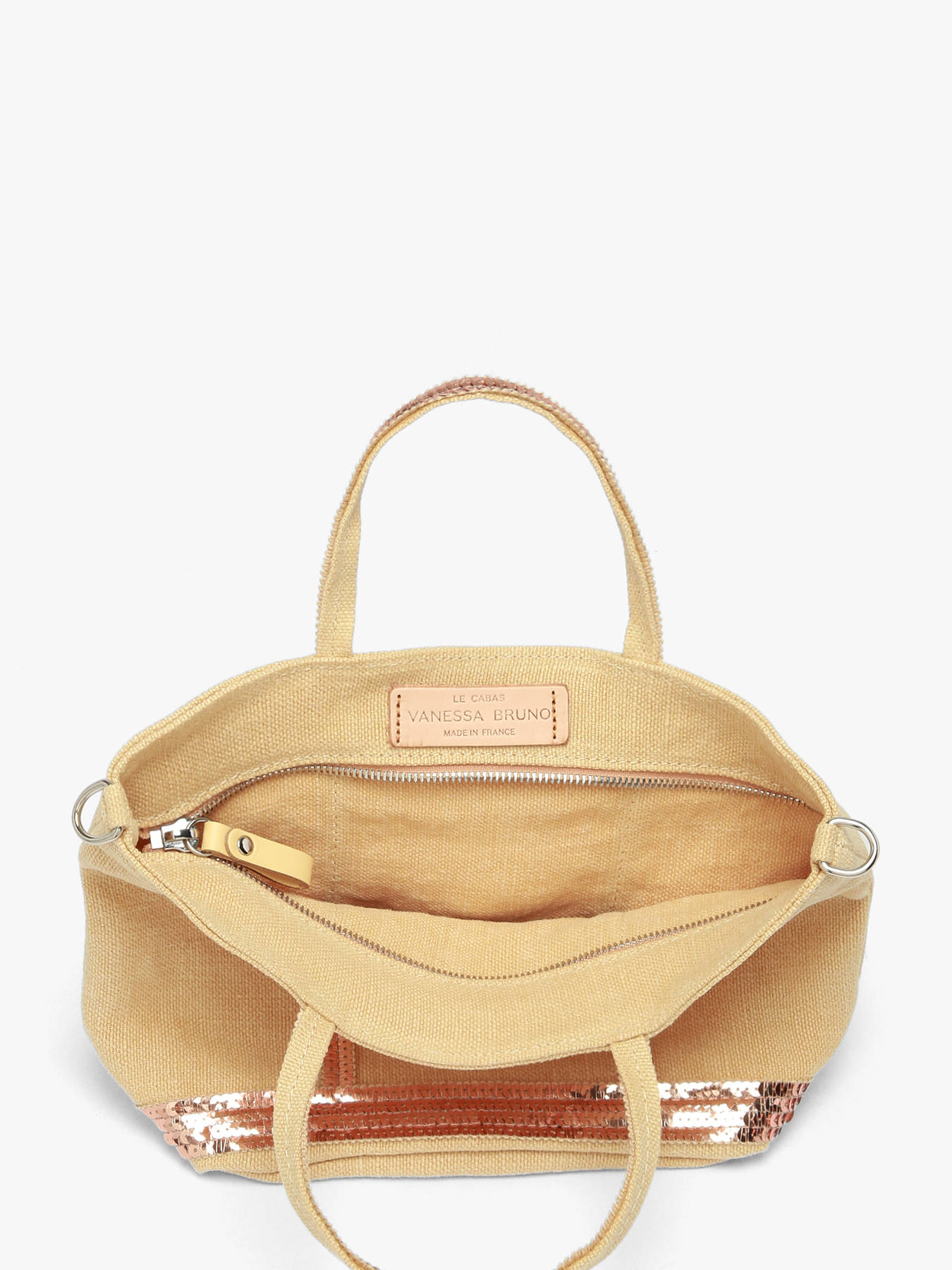 Our team advises you this Vanessa Bruno shoulder bag from the ""Cabas lin"" line for its assets: the XS size of this bag made of linen and sequins, its three carrying possibilities: hand, shoulder and shoulder strap which is adjustable and removable and its inside leather label which certifies that ""Le Cabas Vanessa Bruno [is] Made in France"". What are you waiting for to add this piece to your cart?