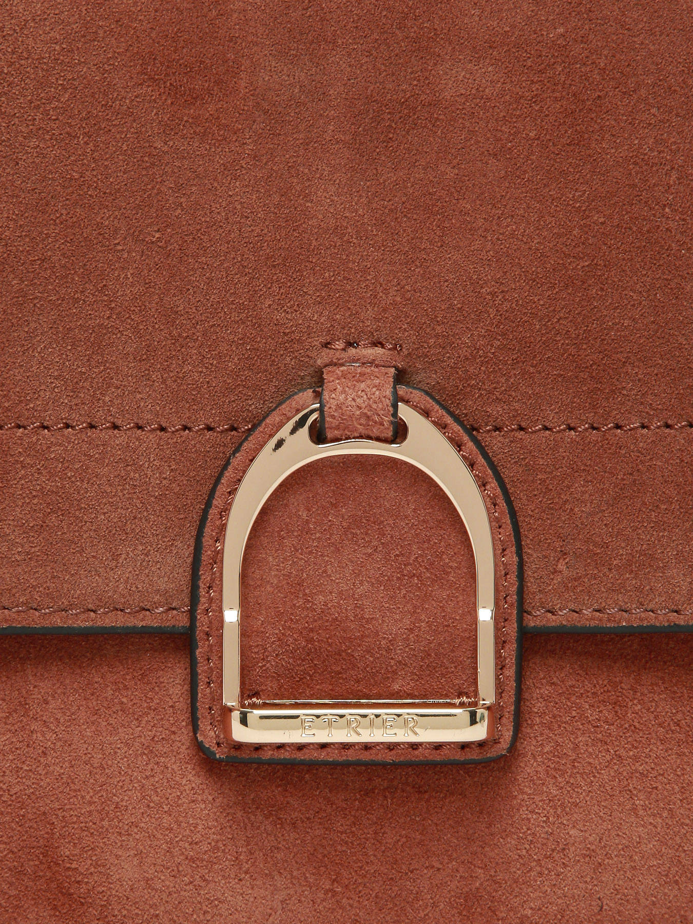 The ETRIER crossbody bag from the ALTESSE SUEDE line comes in its model M, the largest size. This new winter edition of our iconic line features velvety leather with a soft, warm touch, blending timeless elegance with a ""Highlander Cowboy"" spirit. The back of the bag is made of grained leather, providing better durability. It features a magnetic flap adorned with the gold-tone Etrier emblem, a small handle for a refined handheld carry, and an adjustable, removable strap for versatile styling.