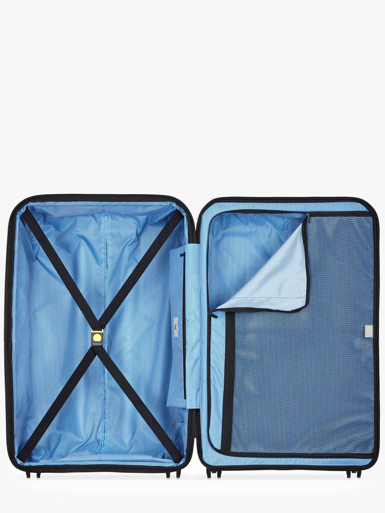 The Delsey Lutèce rigid suitcase is the ideal choice for long trips, offering considerable volume (106 L) in a lightweight, durable design. Awarded a Red Dot Design Award, its Polypropylene shell features an anti-scratch finish while weighing only 3.6 kg. Expandable, this large suitcase (79 x 49 x 32/34 cm) adapts to all your needs by increasing its space with the expansion gusset, easily activated. The security of your belongings is guaranteed by the patented SECURITECH® 2 zipper, three times more resistant to intrusion than a classic zip, supplemented by the TSA lock (008). Rolling is exceptionally smooth on any surface thanks to the four ultra-maneuverable double wheels. The interior is designed for practicality: it is divided into two compartments with a separation net, a transparent mesh pocket, and elastic straps to hold your belongings in place. Choose Lutèce for serene, secure, and stylish travels.