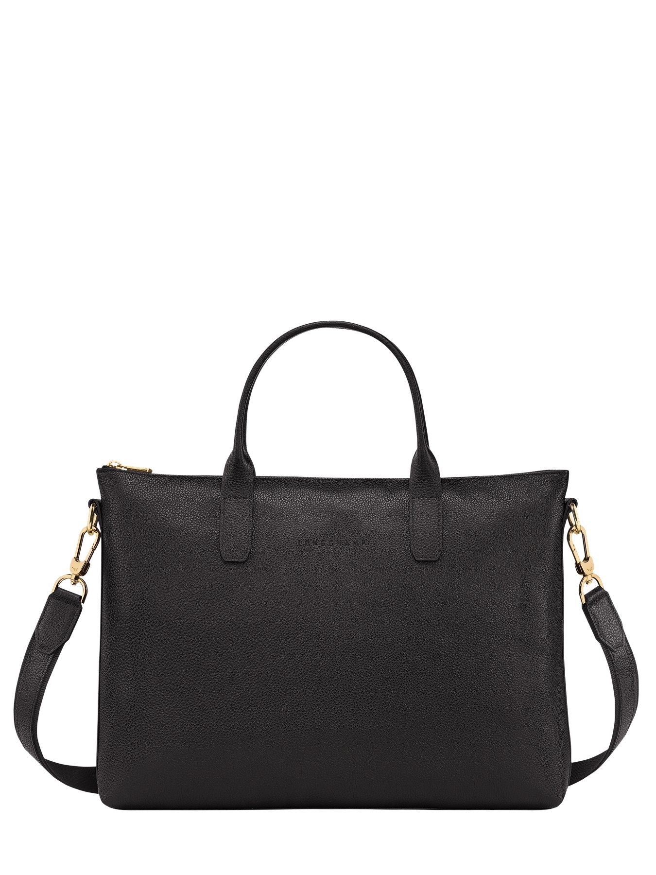 Discover the Le Foulonné leather briefcase from LONGCHAMP. Sober, trendy and classy at the same time, you will enjoy taking it to all your professional meetings. This briefcase is designed in a beautiful drummed leather to accompany you for a long time. Its dimensions will allow you to carry your A4 files for the day. It closes with a zip and can be carried by hand, on the shoulder or as a cross body thanks to its adjustable and removable shoulder strap. Inside the bag, you will find 2 simple pockets and 1 zipped pocket to store your laptop or USB key.