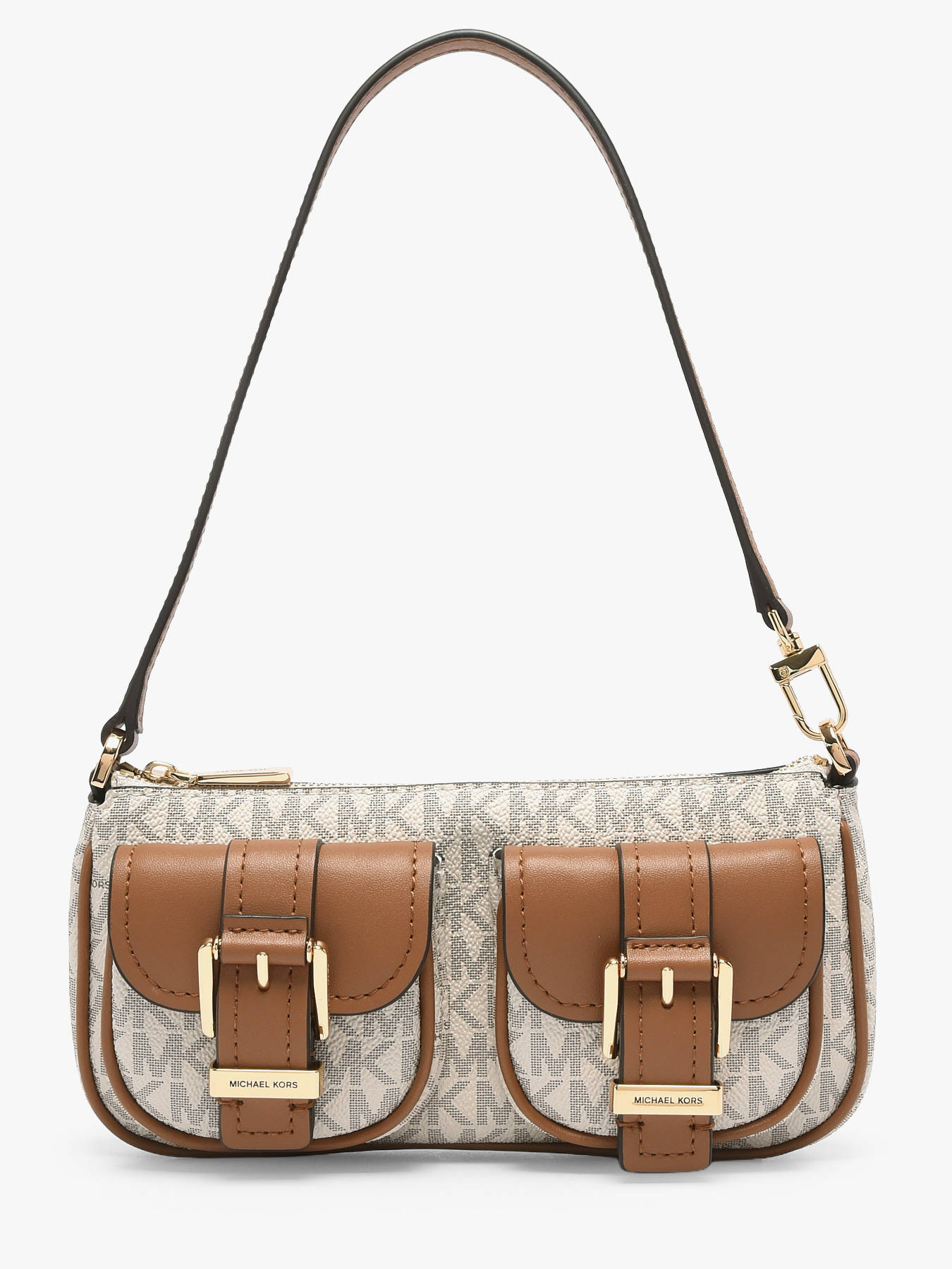 The MICHAEL KORS Zoey handbag combines modernity, functionality, and urban elegance. Crafted from durable polyester, it stands out for its lightweight feel and long-lasting wear, making it ideal for everyday use. Its zip closure securely keeps your belongings safe while ensuring practical handling. Featuring two exterior side pockets, it provides easy access to your essentials on the go. With a 21.5 cm handle, it can be carried by hand or worn on the shoulder, adapting effortlessly to your style and needs. Inside, a spacious single compartment allows for simple and efficient organization of your daily essentials. Both practical and stylish, this Zoey bag perfectly reflects MICHAEL KORS’ contemporary aesthetic, making it a must-have accessory for modern everyday life.