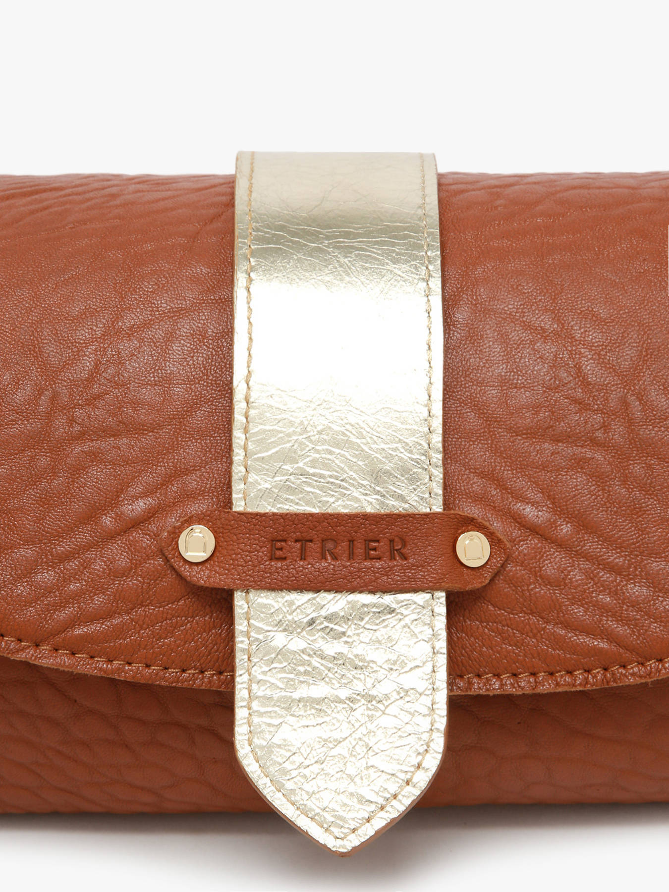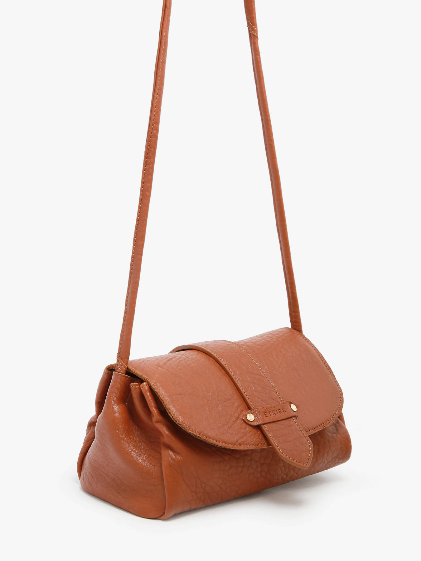 L'intérieur en cuir comprend trois compartiments, dont un central zippé, pour organiser aisément vos effets personnels. Le fond rigide du sac assure un maintien optimal. Le logo ETRIER, embossé sur du cuir naturel, est orné d'un petit drapeau français, apportant une touche élégante et distinctive.