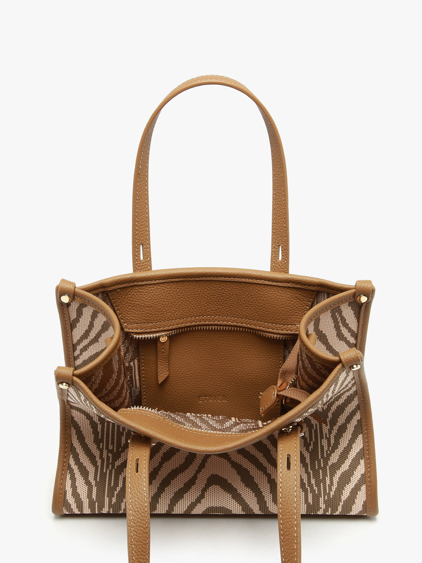 Le mini cabas SAFARI par ETRIER décline l’esprit audacieux de la ligne dans un format compact et résolument tendance. Confectionné en textile rehaussé de finitions en cuir, il se distingue par ses imprimés animaliers graphiques qui affirment un style fort et moderne. Pratique et léger, ce modèle taille S se porte à la main grâce à ses anses de 16 cm ou en bandoulière avec sa sangle réglable et amovible, pour s’adapter à toutes vos envies. Sa fermeture zippée assure la sécurité de vos essentiels, tandis qu’une poche zippée intérieure permet un rangement organisé. Un mini cabas stylé et fonctionnel, idéal pour accompagner vos journées estivales avec caractère et élégance.