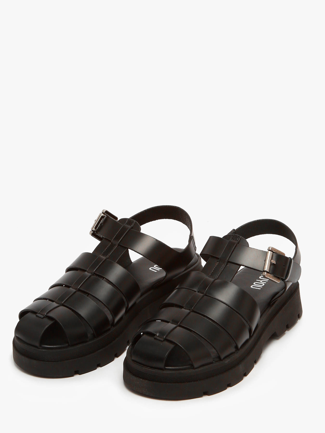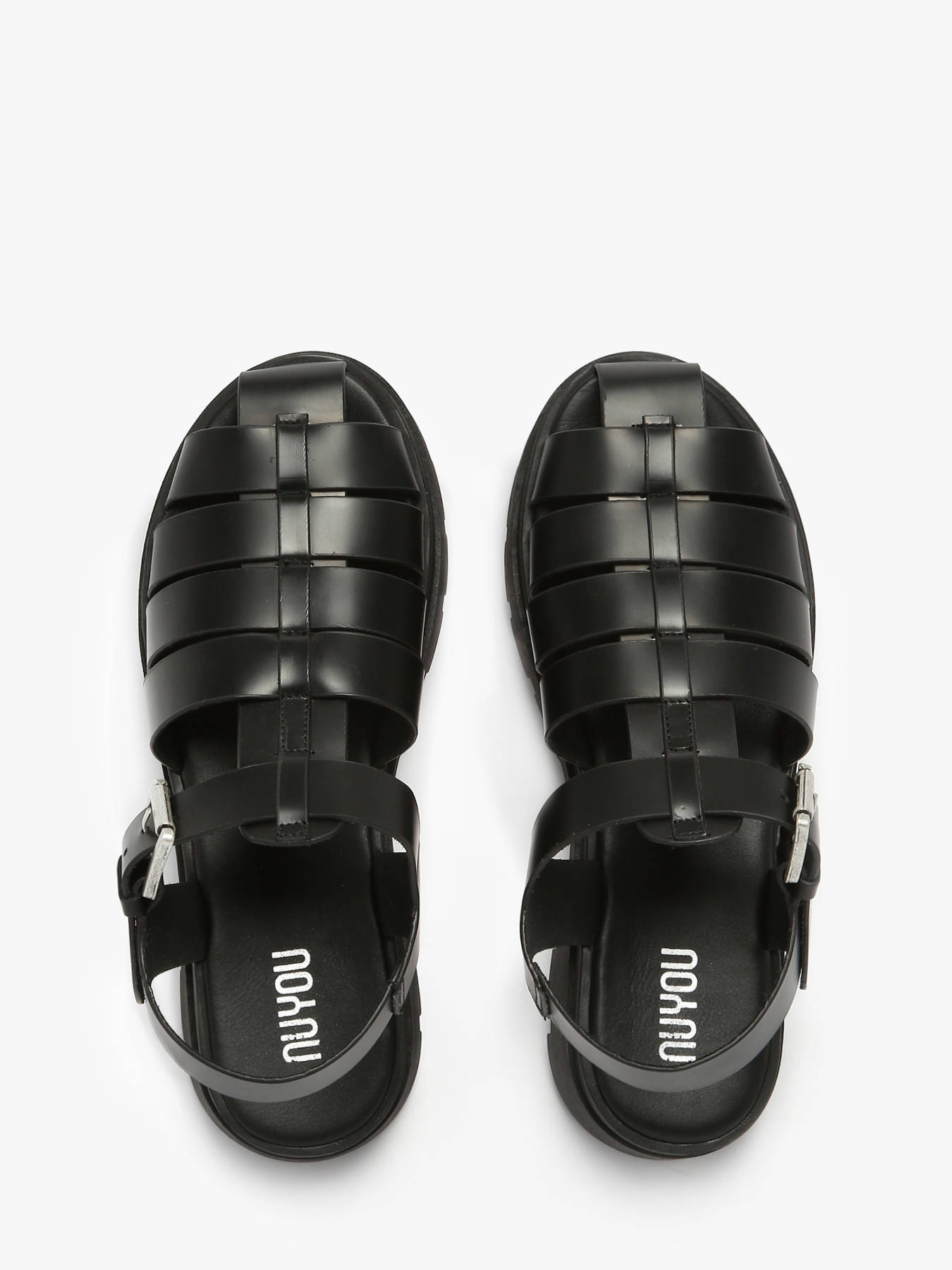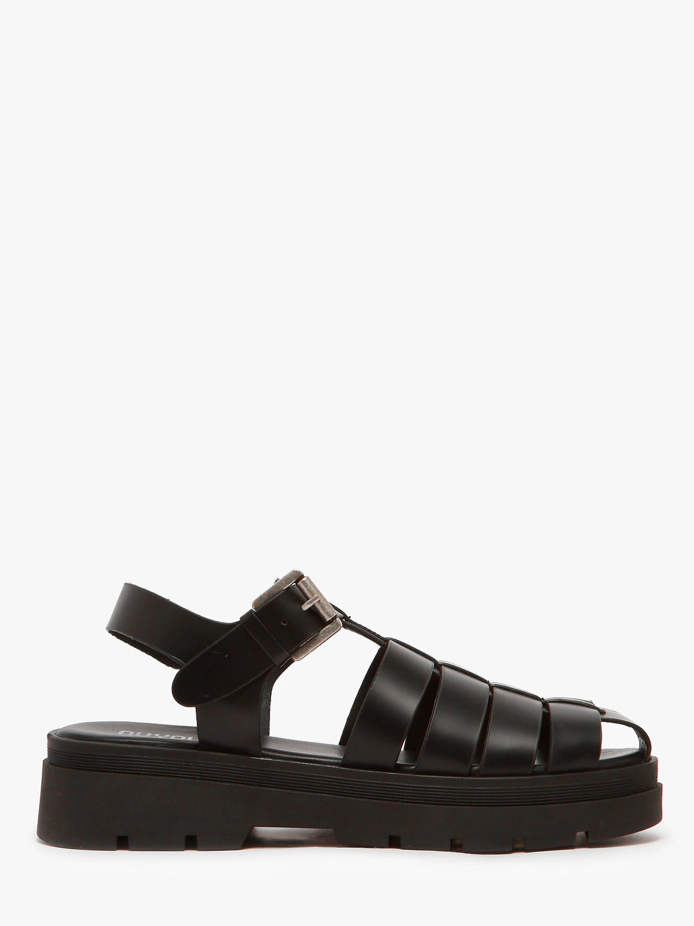 The Tate sandals by NUYOU reinterpret the jellyfish style with a contemporary and sophisticated twist. Crafted from smooth black leather, they add a sleek touch to your summer outfits. The leather upper ensures durability and comfort, while the leather lining and insole provide a pleasant feel. The metallic buckle closure allows a precise and secure fit. The lugged rubber outsole guarantees good traction for confident walking. With their bold and modern silhouette, these sandals are perfect for an urban and chic look.