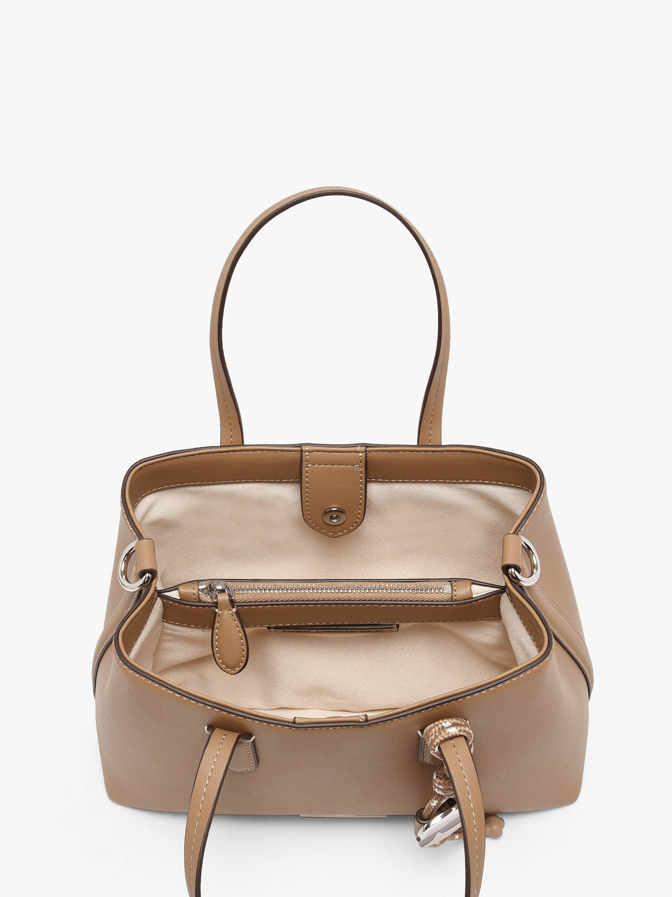 The K IKON Karl Lagerfeld handbag, crafted from durable polyester, combines lightness with modern elegance. Its smooth, sleek exterior features a magnetic closure that provides easy and secure access inside. With a 13 cm handle, it offers comfortable and refined hand carry, while the adjustable and removable shoulder strap allows for practical and stylish crossbody wear according to your preference. The spacious interior is made up of two separate compartments, complemented by a simple pocket, for efficient organization of your everyday essentials. This versatile bag reflects Karl Lagerfeld’s contemporary and bold aesthetic, perfect for complementing all your outfits, from work to outings. Lightweight, functional, and chic, it embodies the ideal accessory for those seeking a balance of design, comfort, and practicality.