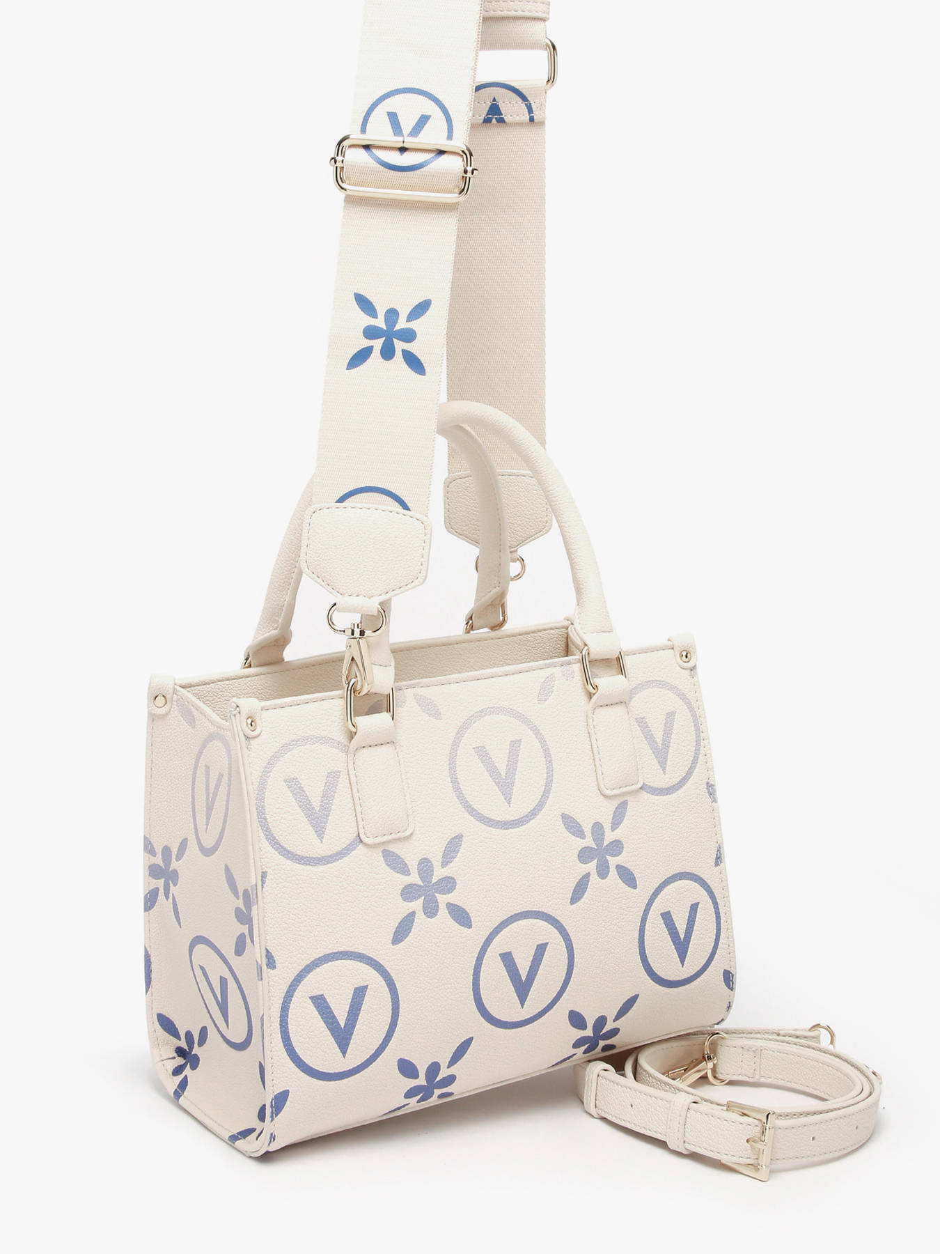 The Valentino Samba Re Print top-handle bag stands out with its modern, graphic design, created to combine style and functionality. Made from coated canvas, it offers excellent durability while maintaining an elegant, structured look. Its zip closure keeps personal belongings secure, while the 11 cm handle ensures comfortable hand carry. Featuring an adjustable and removable shoulder strap, it allows for versatile wear, either crossbody or handheld. The interior includes a spacious main compartment, enhanced by one slip pocket and one zip pocket for optimal organization. This model embodies the Valentino spirit, blending practicality, character, and sophistication for confident everyday use.