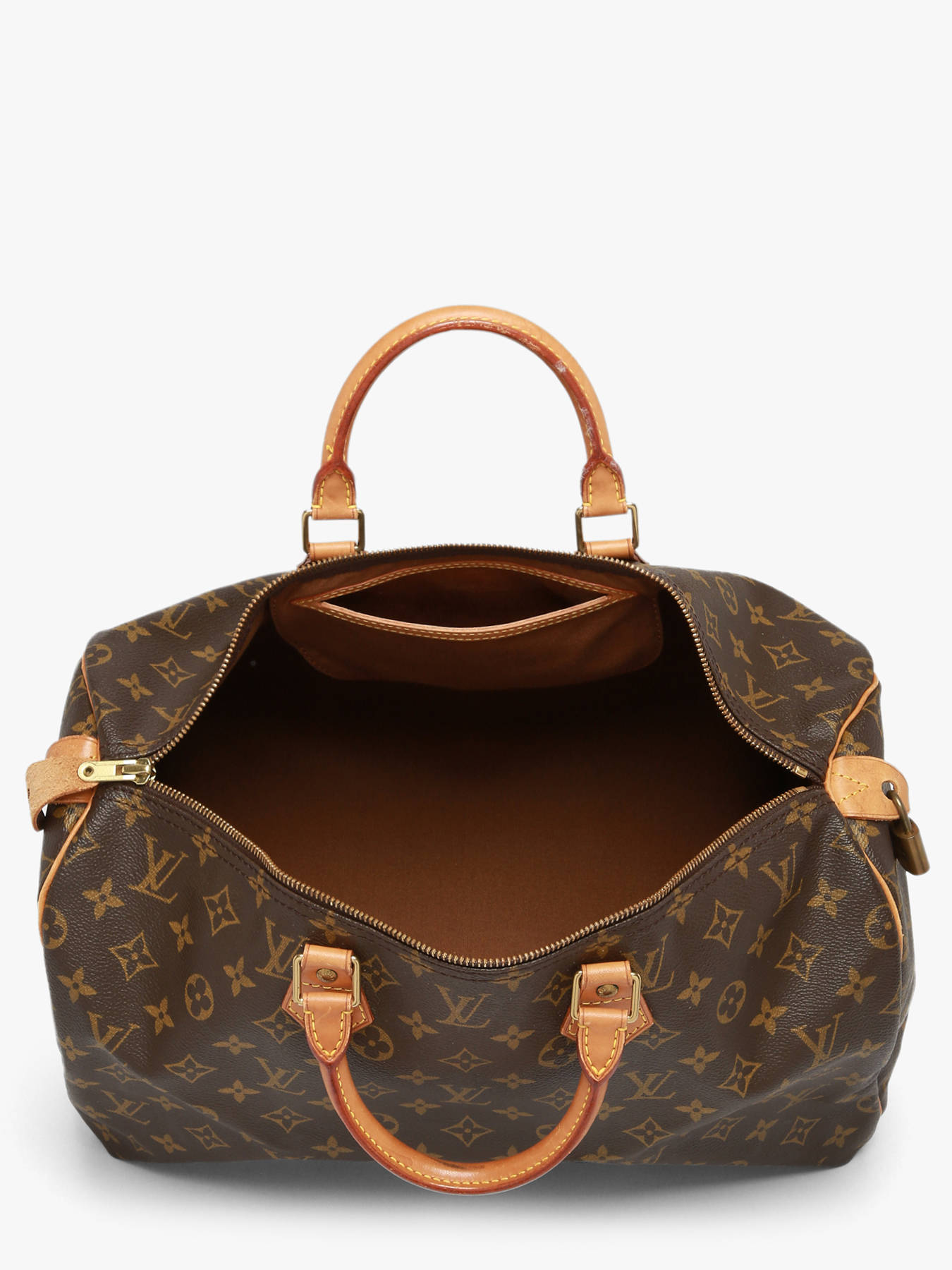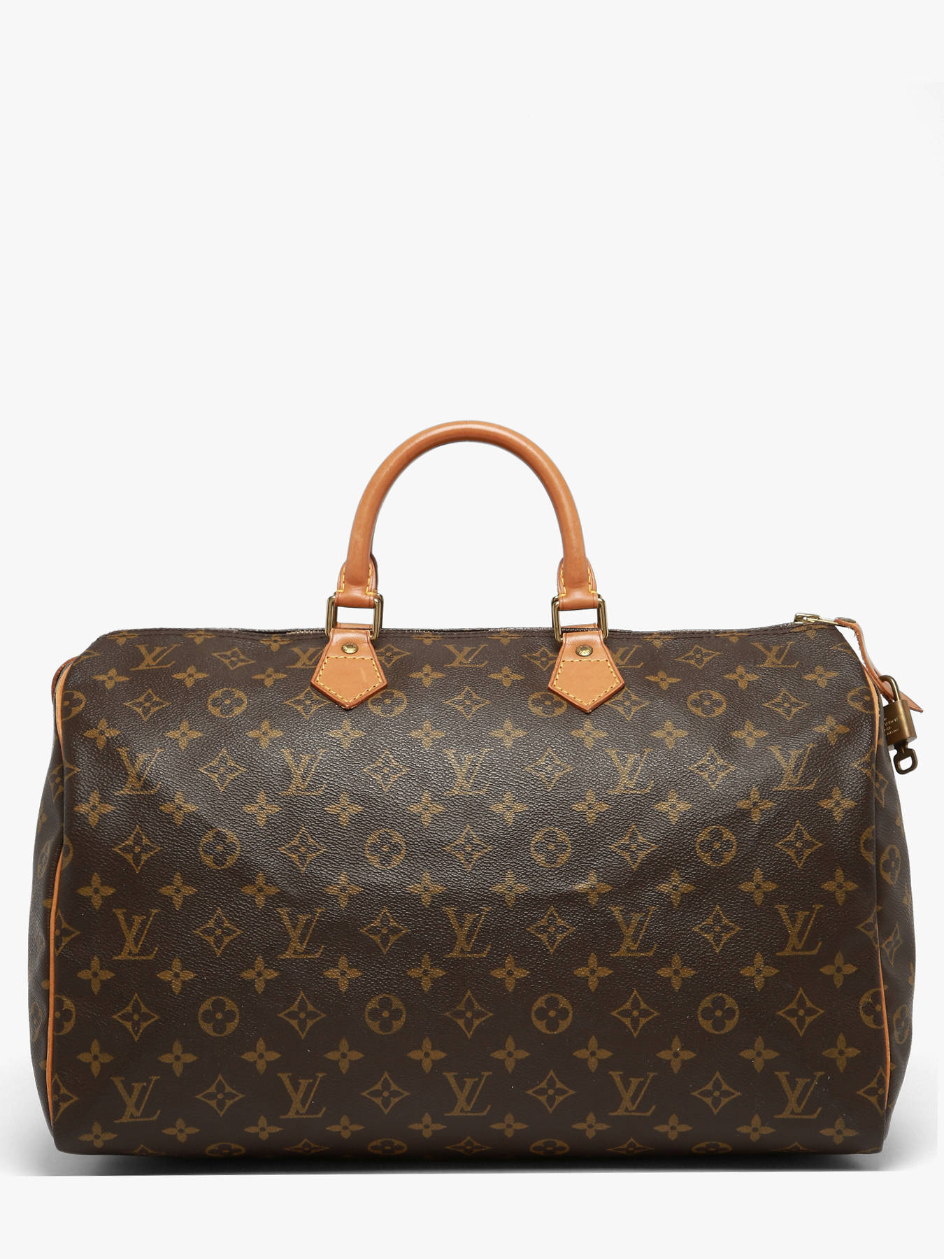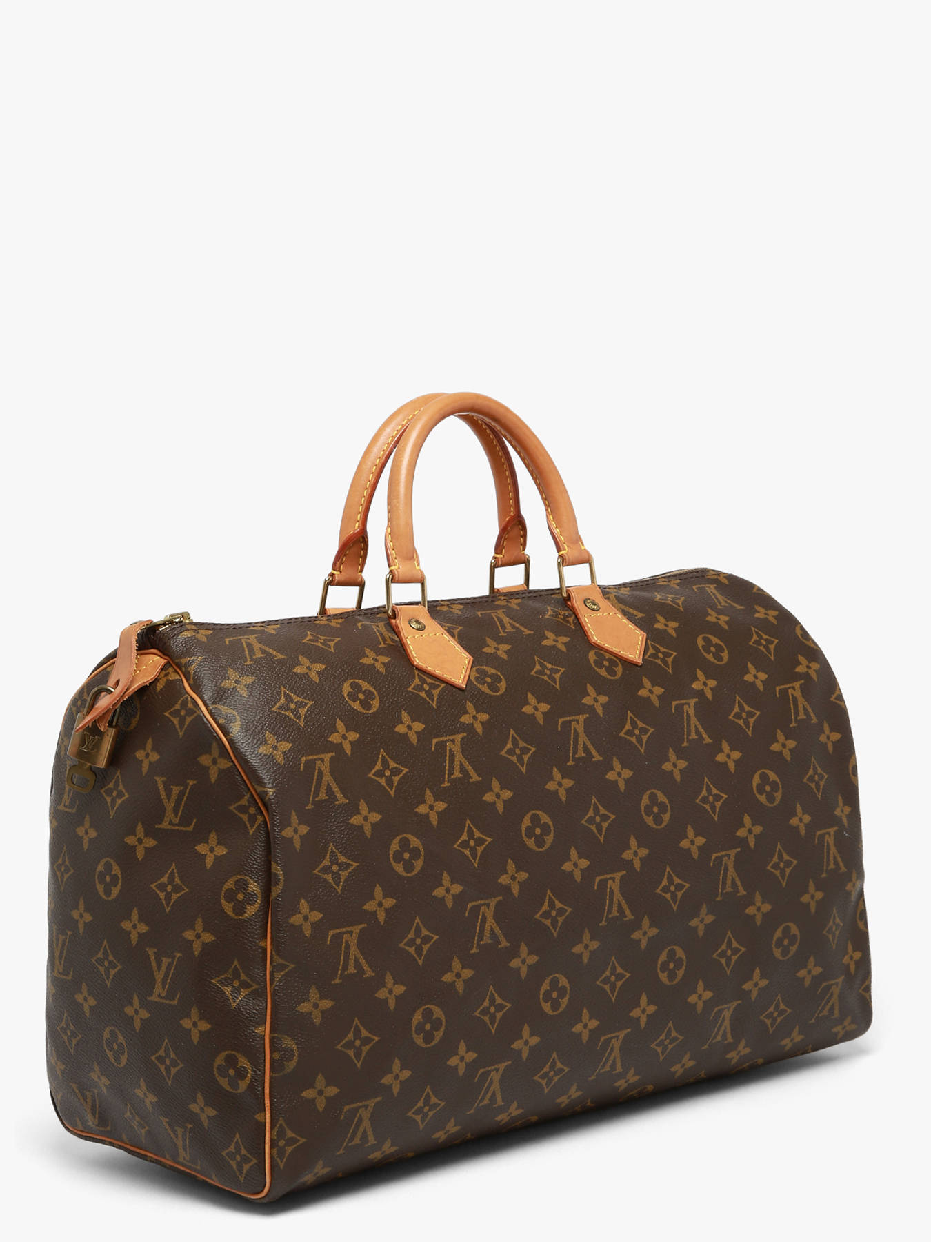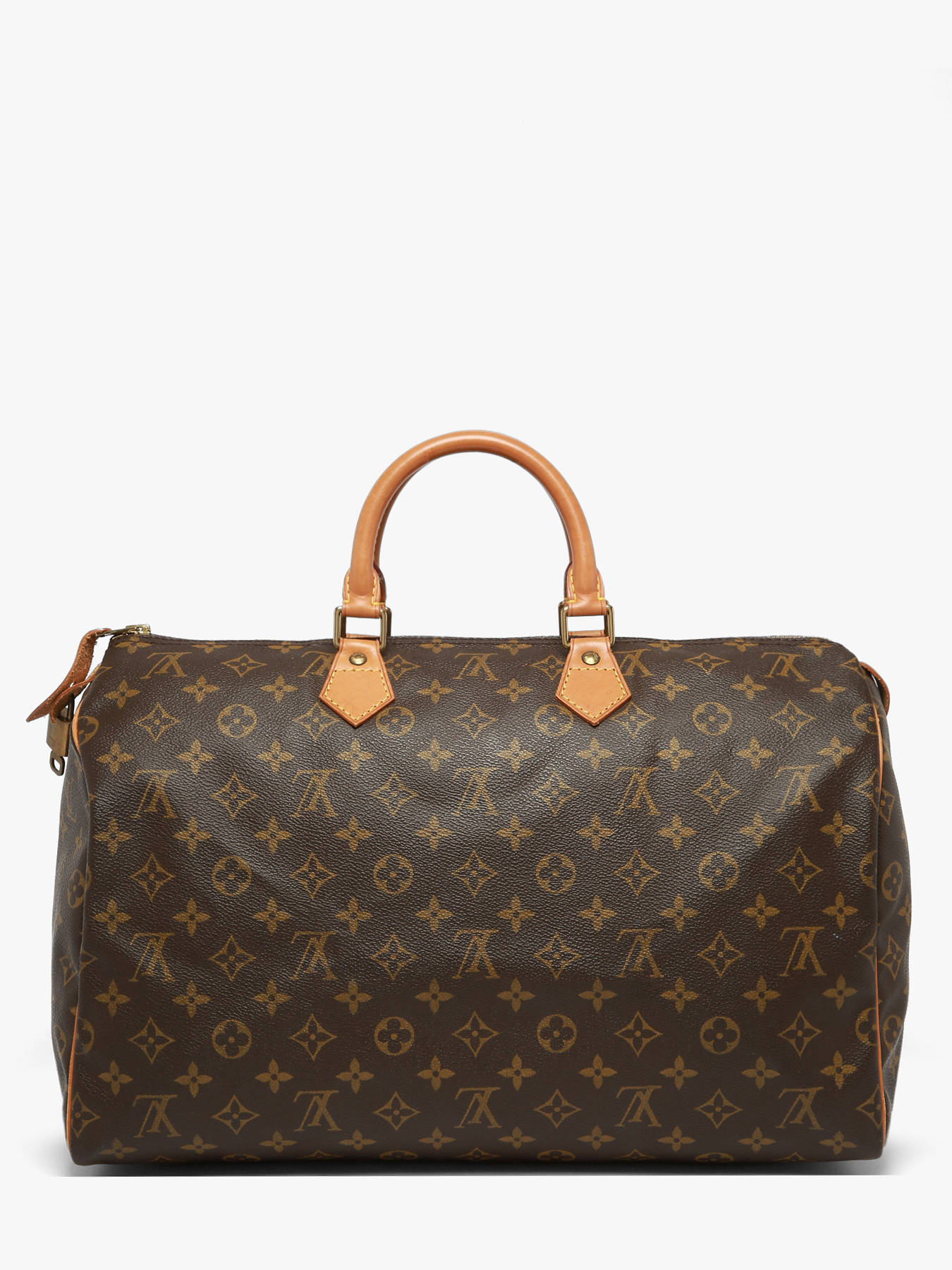 The Louis Vuitton pre-owned top handle bag in coated canvas with leather trim embodies timeless elegance and the iconic craftsmanship of the house. Its zip closure keeps your belongings secure, while the 10 cm handle allows for elegant hand carrying. Inside, one main compartment and one slip pocket provide practical storage for your daily essentials. This pre-owned model is graded A, meaning it is in very good condition, having been regularly and carefully used with only light signs of wear. It comes with its padlock, adding both authenticity to this iconic bag. Combining vintage charm with modern functionality, this bag is a must-have for lovers of responsible luxury, perfect for enhancing your outfits with elegance and character.