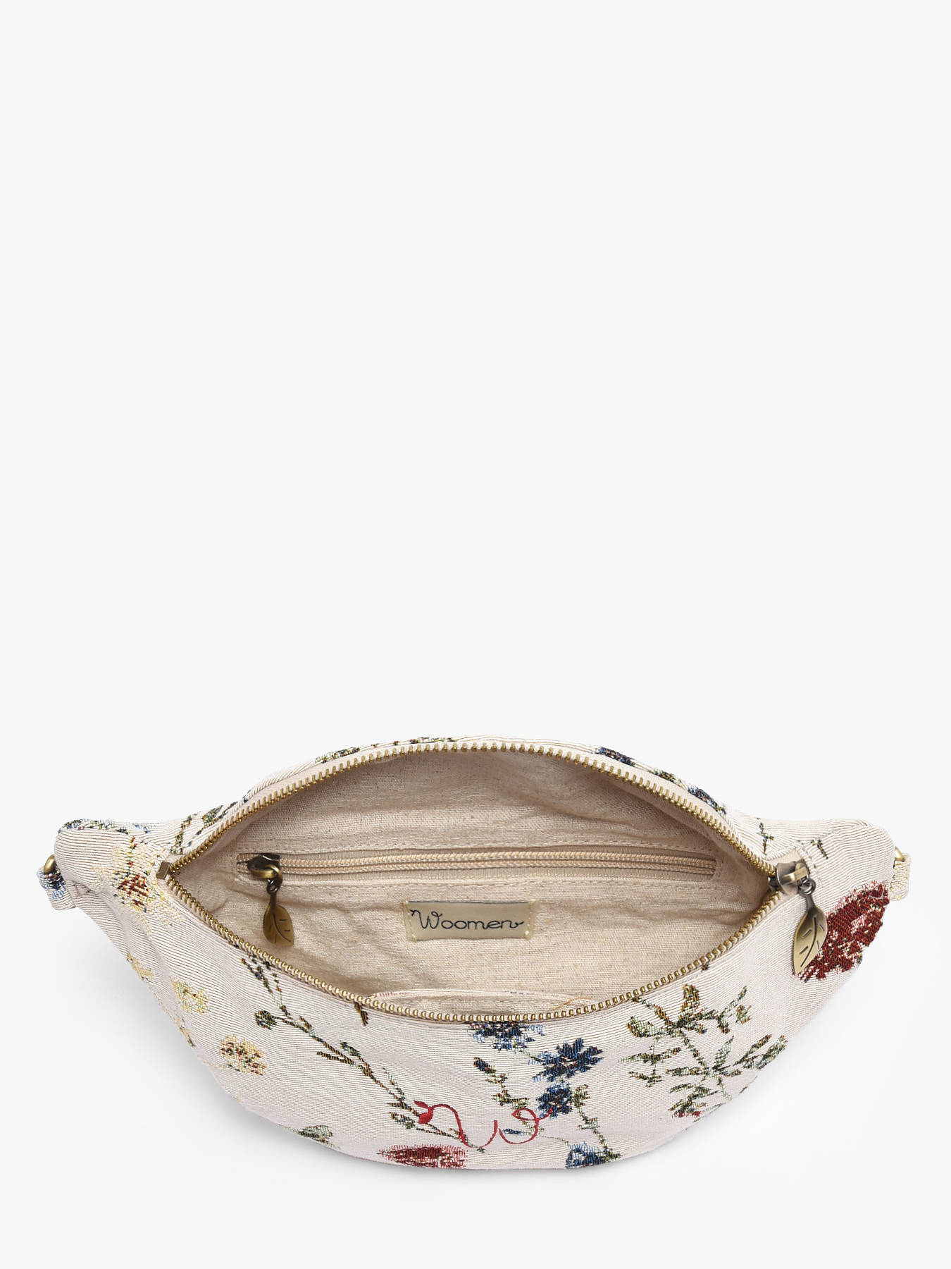 The WOOMEN belt bag from the Alocasia line embodies the perfect blend of craftsmanship and modernity. Its refined jacquard with delicate patterns reflects subtle, timeless femininity, while the embroidered W logo on the front asserts the brand’s identity. Made from cotton and polyester, it combines durability and lightness, with a cotton and linen lining for a soft, meticulous finish. Featuring a zip closure, it keeps your personal belongings secure every day. The adjustable and removable shoulder strap allows it to be worn at the waist or across the body, offering comfort and freedom of movement. Inside, a slip pocket and a zip pocket help organize your essentials. Elegant and practical, this belt bag easily complements any outfit, whether casual or dressed up, while adding a touch of artisanal originality.