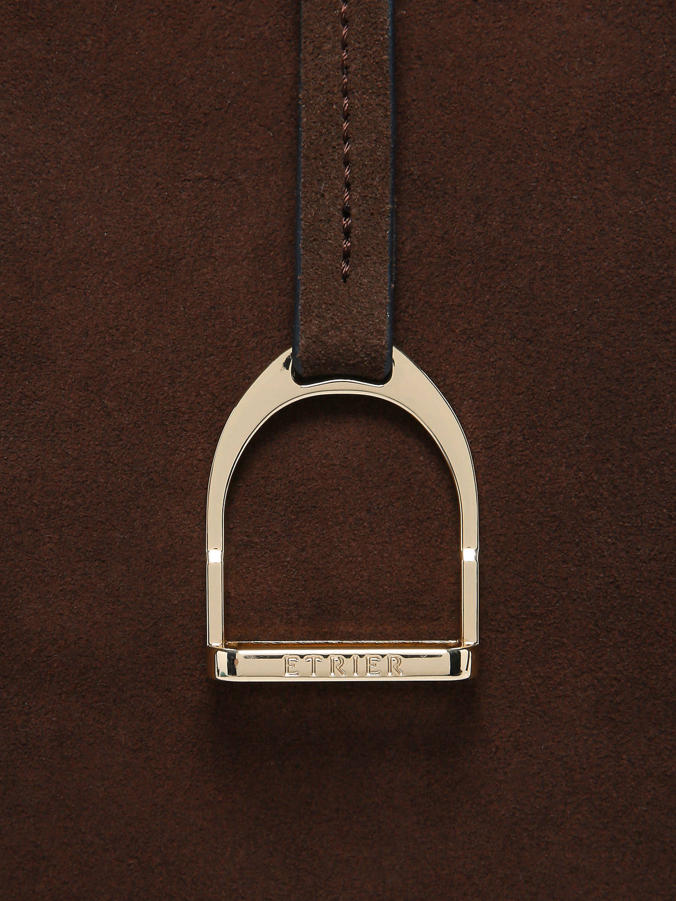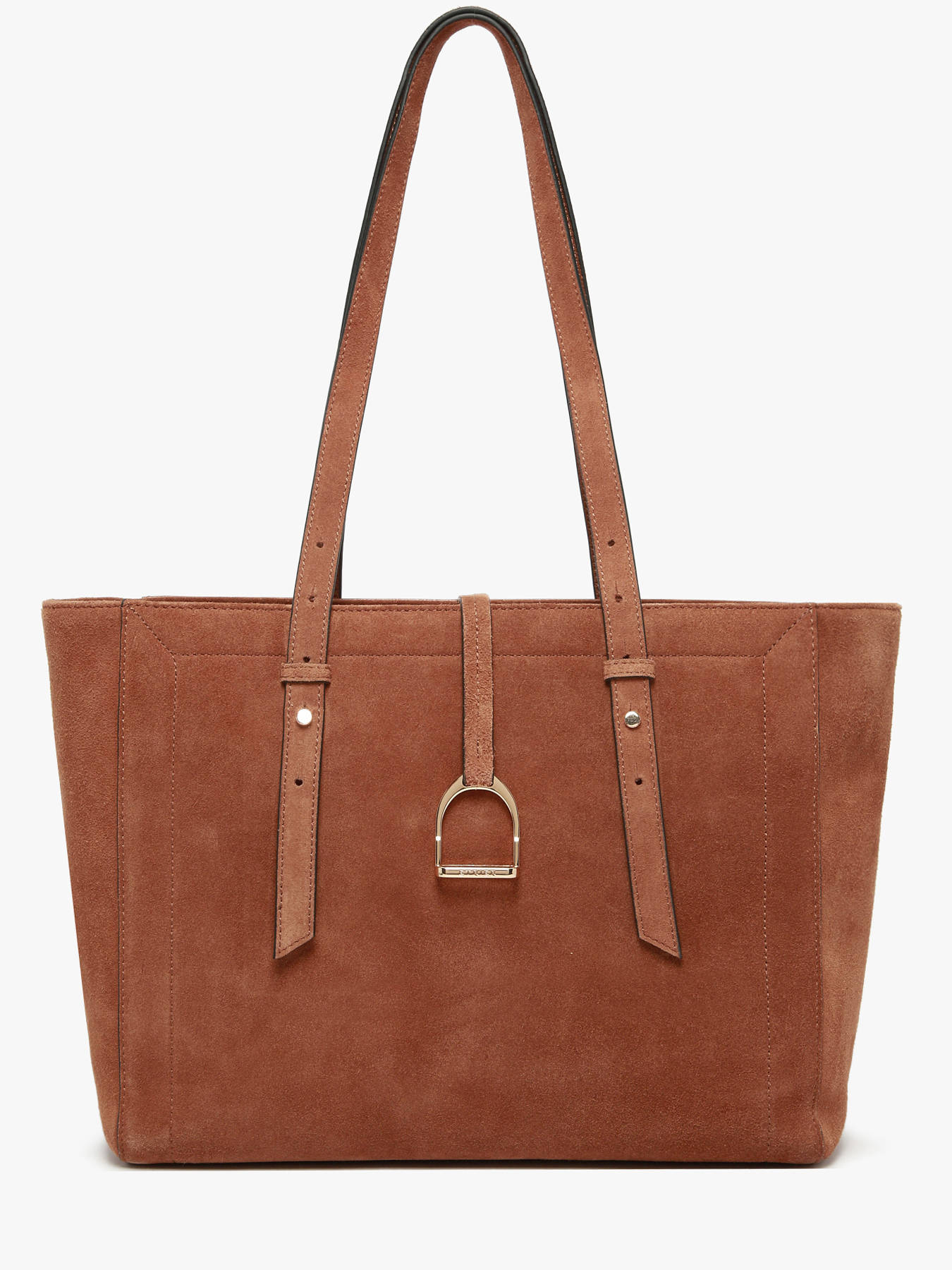The ETRIER shoulder bag from the ALTESSE SUEDE line is crafted from soft velvety leather. It features a tote shape ideal for everyday use. It closes with a zipper and is adorned with a stirrup-shaped pendant, the elegant signature of the House. Inside, a spacious compartment includes two slip pockets and a zipped pocket for optimal organization. It also offers a generous size that can accommodate A4 documents as well as a laptop up to 13 inches. The back of the bag is made of grained leather for enhanced durability. The ALTESSE SUEDE line revisits the ETRIER icon with a warm texture and a ""Highlander Cowboy"" spirit, blending refinement and character.