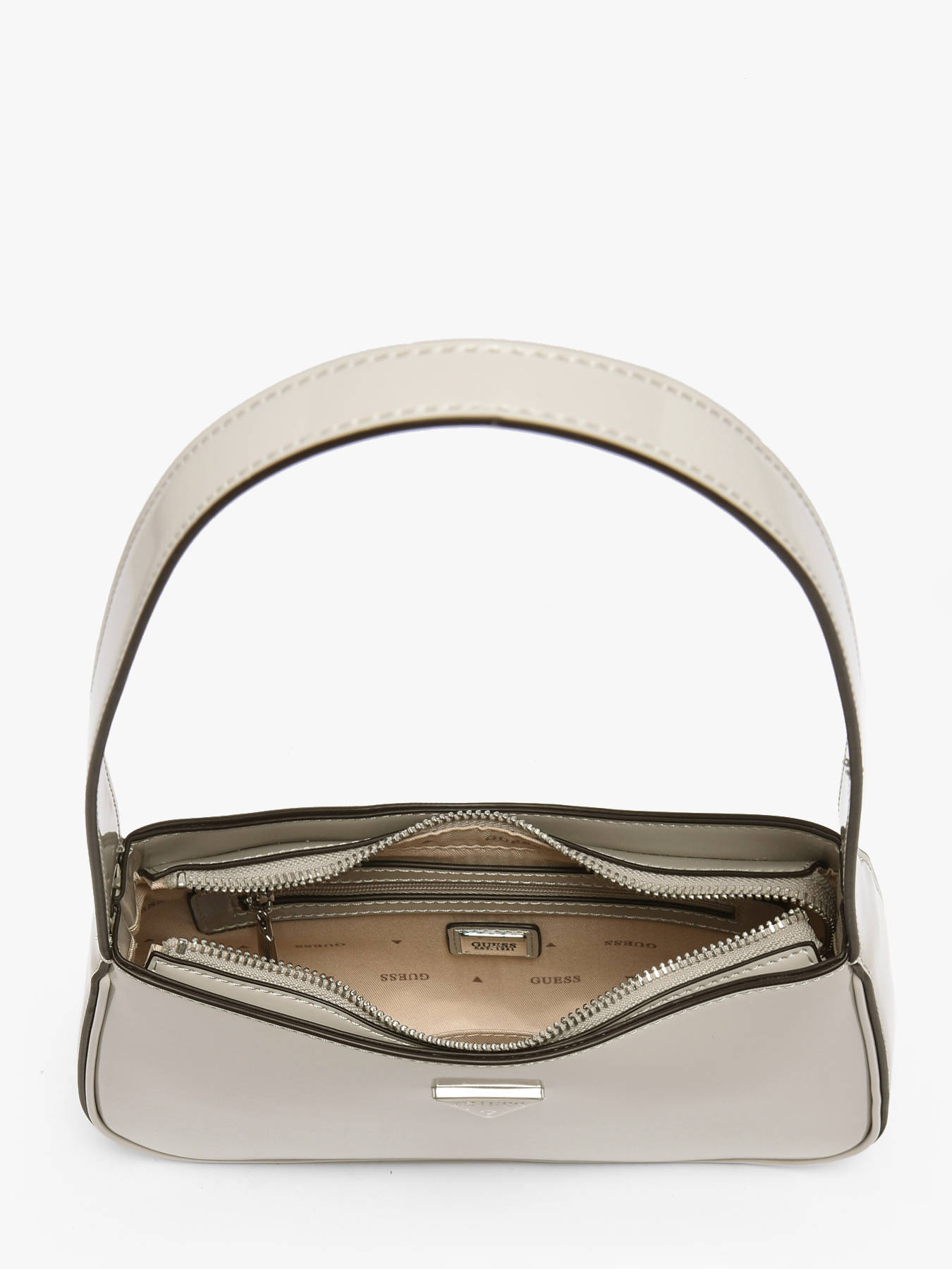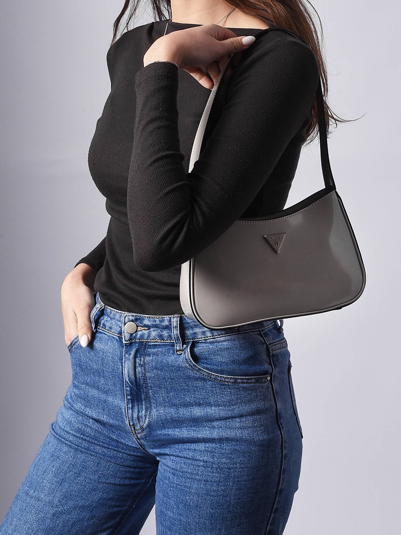 The ARNELA shoulder bag by GUESS, made of P.U, combines modernity and practicality. On the outside, it features a secure zip closure and a 26 cm handle, ideal for comfortable shoulder wear. This versatile bag is perfect for daily use thanks to its elegant and functional design. Inside, it has a spacious main compartment, complemented by a practical zippered pocket to organize small items, as well as three card slots to keep your essentials well-organized and accessible. The ARNELA GUESS bag is a chic accessory, perfect for combining style and organization every day.