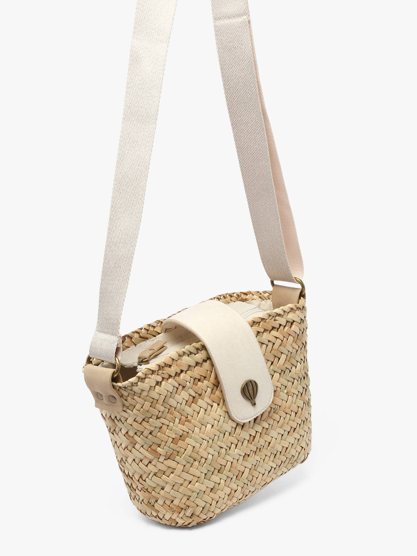 Adopt an elegant summer style with this LE VOYAGE EN PANIER crossbody bag from the ESTIVAL line. Made from straw with synthetic trims, it stands out with its natural and trendy look, perfect for warm days. Its lightweight and feminine design pairs effortlessly with any outfit, from casual wear to more refined styles. Featuring a magnetic flap closure, it offers both convenience and security for everyday use. The adjustable shoulder strap ensures a comfortable fit tailored to your preference. Inside, a single compartment with two slip pockets provides practical storage for your essentials. Ideal for daily outings or summer getaways, this crossbody bag combines style, lightness, and functionality, making it a must-have accessory for a chic and effortless seasonal look.