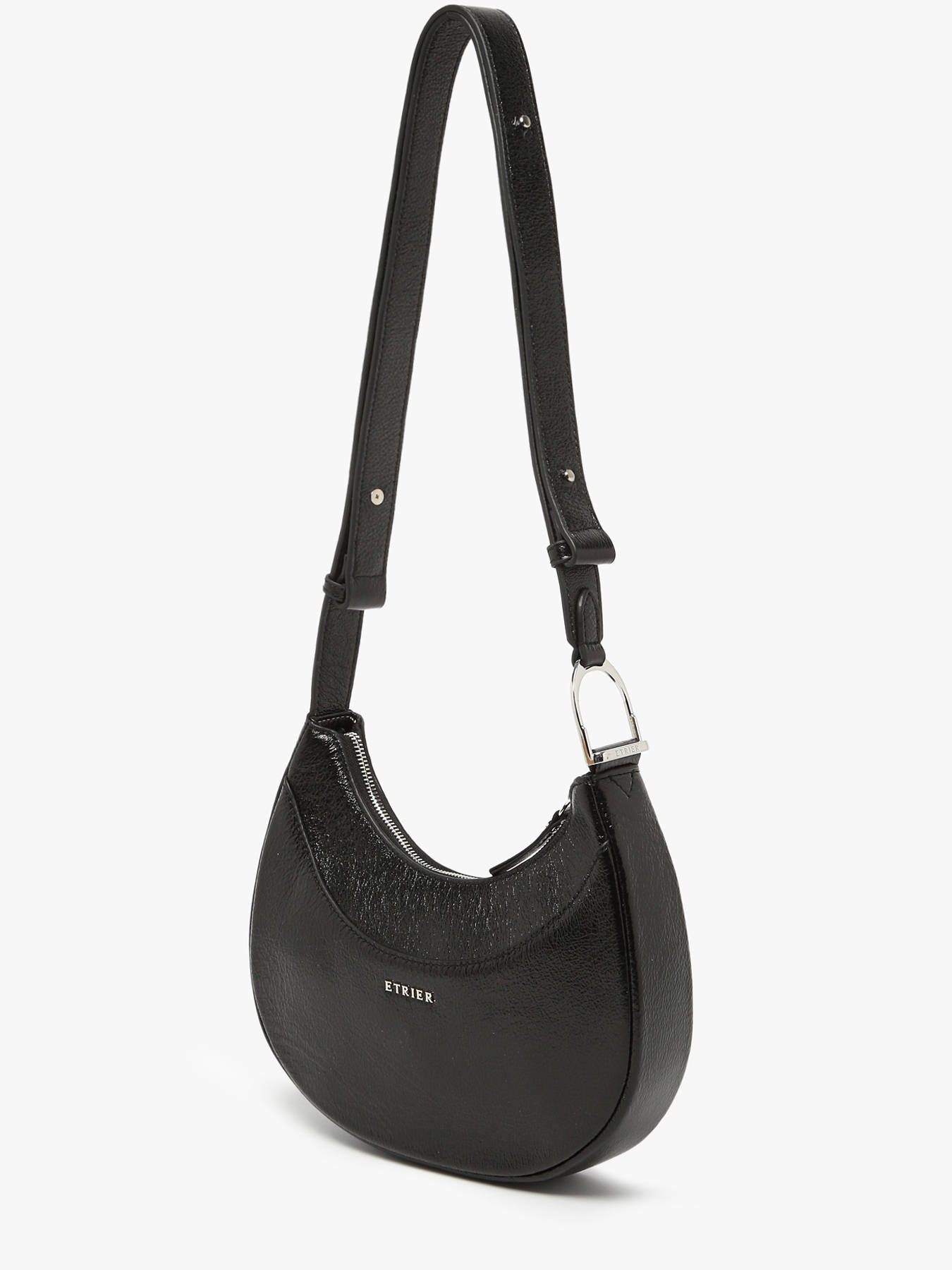 The ETRIER shoulder bag from the JOLLY line is crafted from iridescent cowhide leather, bringing a luminous elegance to this bold style. Its zipped closure ensures the security of your belongings, while the back exterior pocket offers quick and practical access to essentials. The adjustable strap provides comfortable shoulder wear, perfect for everyday use. Inside, the main compartment is complemented by a simple pocket and a zipped pocket, making organization easy. The Jolly line draws inspiration from the “Highlander Cowboy” spirit, blending wild allure with modern refinement. The Etrier logo detail on the strap adds a final elegant and distinctive touch to this bag, ideal for showcasing a unique style during winter.