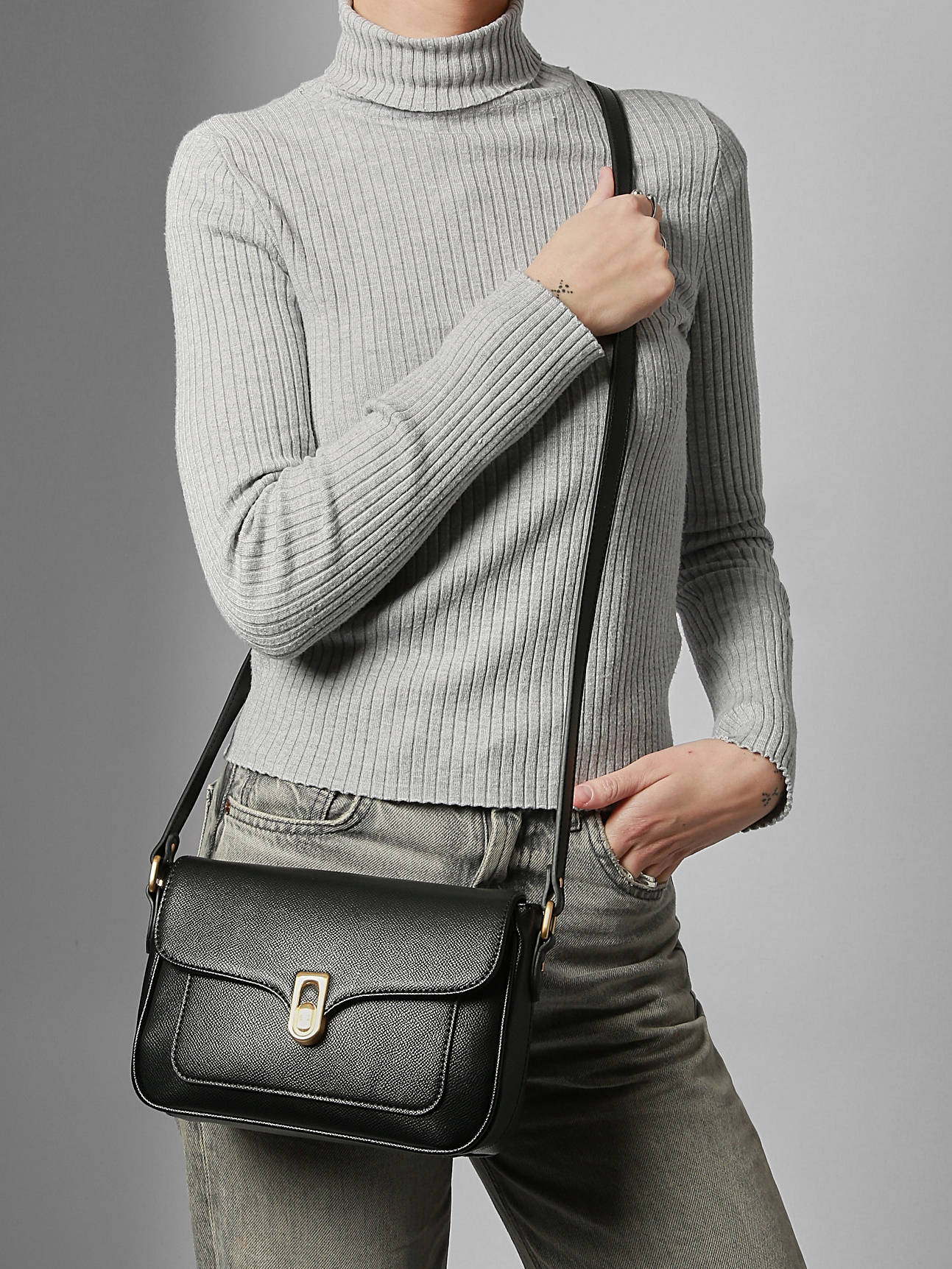 The MERLINE HEXAGONA crossbody bag, made of synthetic material, combines elegance and practicality with its refined design. Its magnetic flap closure ensures easy use while securing your belongings. This bag features an adjustable and removable strap, allowing you to wear it crossbody as you wish. On the outside, it includes a front pocket and a back pocket, convenient for quick access to your essentials. Inside, two separate compartments allow for efficient organization, complemented by one simple pocket and two zipped pockets for secure storage. Lightweight and versatile, the MERLINE HEXAGONA adapts to all occasions, blending modern style and functionality to accompany you daily with elegance.