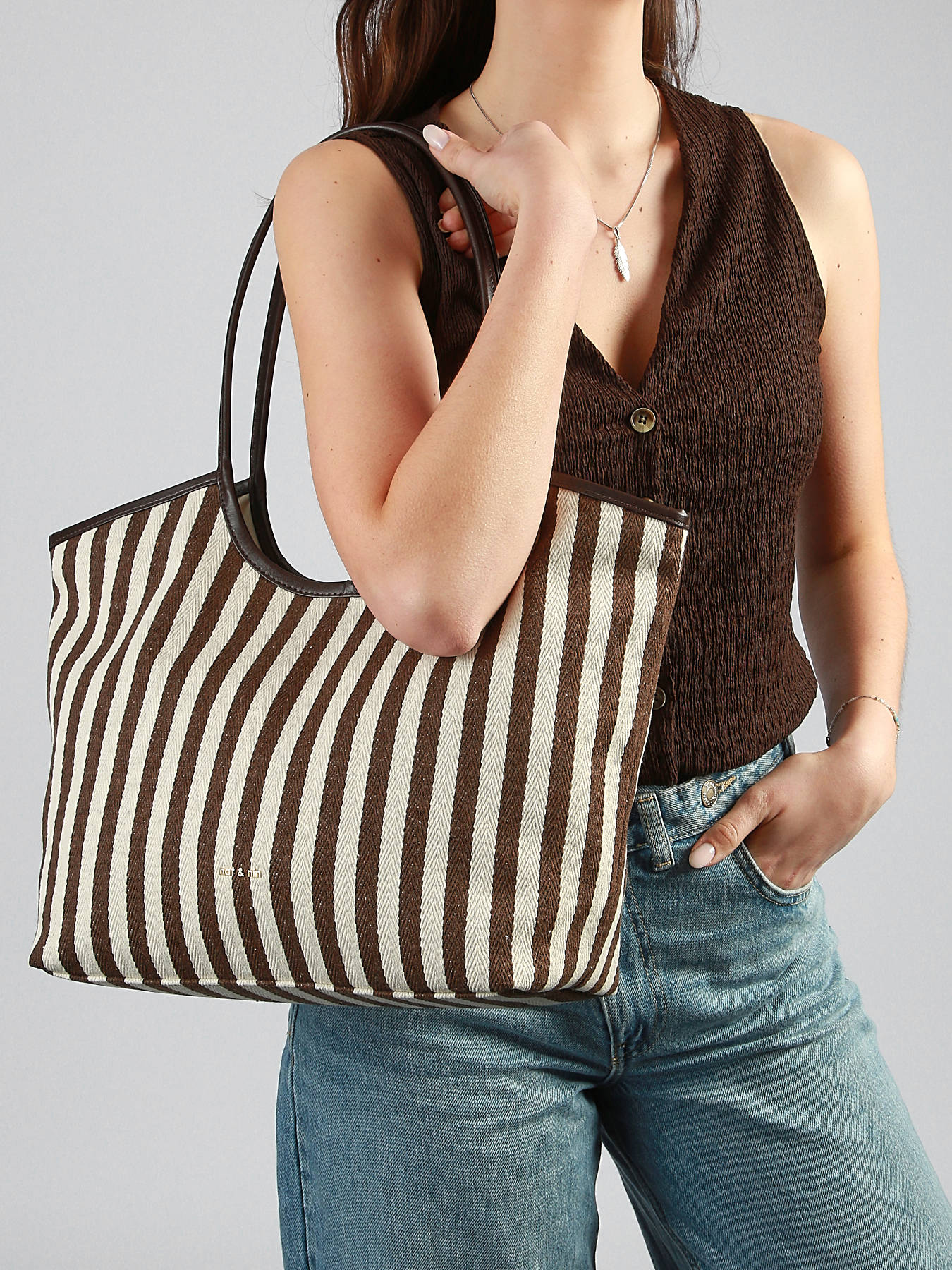 The RAYURE NAT ET NIN shoulder bag, made from cotton, combines casual style with functionality for everyday use. Its exterior features a magnetic closure and a 28 cm handle, providing comfortable shoulder wear. Inside, a main compartment, a simple pocket, and a zip pocket offer organized storage for essentials such as your phone, wallet, or small accessories. Lightweight, practical, and stylish, this RAYURE NAT ET NIN bag stands out for its quality materials and clean design, adding a modern and chic touch to any outfit. Perfect for those seeking a versatile, aesthetic, and functional bag, it is an essential accessory to complete your daily look.