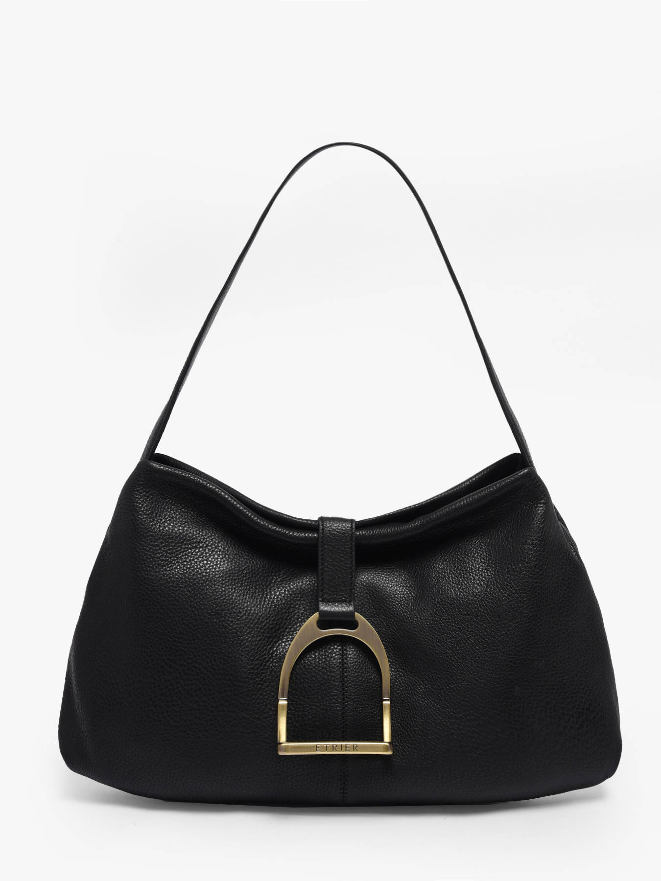 Elegant and compact, the ETALON S bag by ETRIER embodies a chic and feminine everyday style. Crafted from full-grain cowhide leather, it stands out for its supple feel and impeccable structure. Its magnetic closure is enhanced by the iconic suspended stirrup jewel, an elegant signature of the ETRIER house. The cleverly designed interior features three compartments, including one zipped compartment, allowing you to organize your essentials with ease. Designed for comfortable shoulder wear, it features a 25 cm handle, ideal for accompanying your active days. A timeless leather bag, perfect for adding a fashionable touch to all your looks.