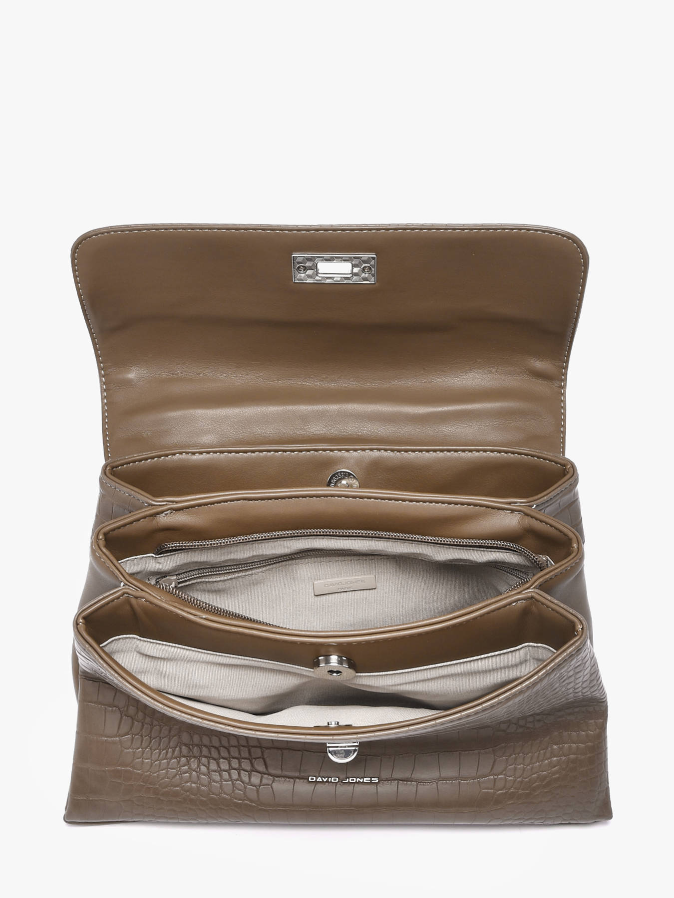 The DAVID JONES SOUTH AFRICA Shoulder Bag combines refined elegance with everyday practicality. Made from high-quality PU, it features a smooth, durable texture that is easy to maintain. Its flap and clasp closure secures your belongings while adding a touch of sophistication to its design. The interior includes three compartments, one simple pocket, and one zip pocket, allowing optimal organization for documents, phone, accessories, and daily essentials. Versatile, it can be worn on the shoulder or as a crossbody with its adjustable and removable strap, and the 21 cm handle ensures comfortable wear. Compact yet generously sized for essentials, the SOUTH AFRICA bag is perfect for city outings or active days, blending contemporary style, functionality, and relaxed elegance. With clean lines and refined finishes, it becomes an indispensable everyday accessory.