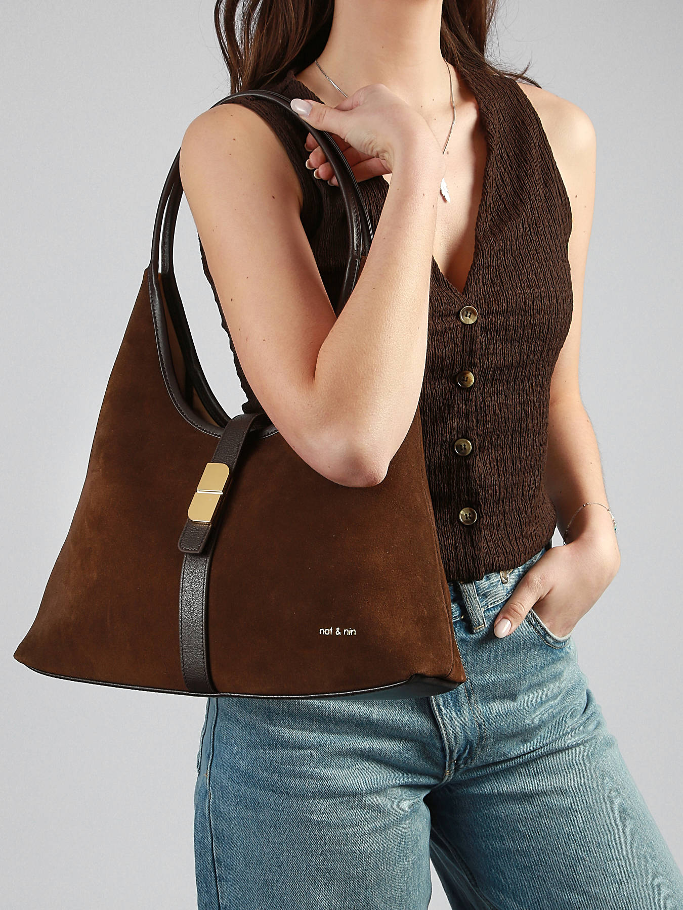 The VINTAGE NAT ET NIN shoulder bag, crafted from cowhide leather, combines timeless elegance with practicality for everyday use. Its exterior features a magnetic closure and a 30 cm handle, providing comfortable shoulder wear. Inside, a main compartment, a simple pocket, and a zip pocket offer organized storage for essentials such as your phone, wallet, or small accessories. Lightweight, refined, and durable, this VINTAGE NAT ET NIN bag stands out with high-quality materials and a clean design, adding a chic and modern touch to any outfit. Perfect for those seeking a practical, stylish, and versatile bag, it is an essential accessory to complete your daily look.