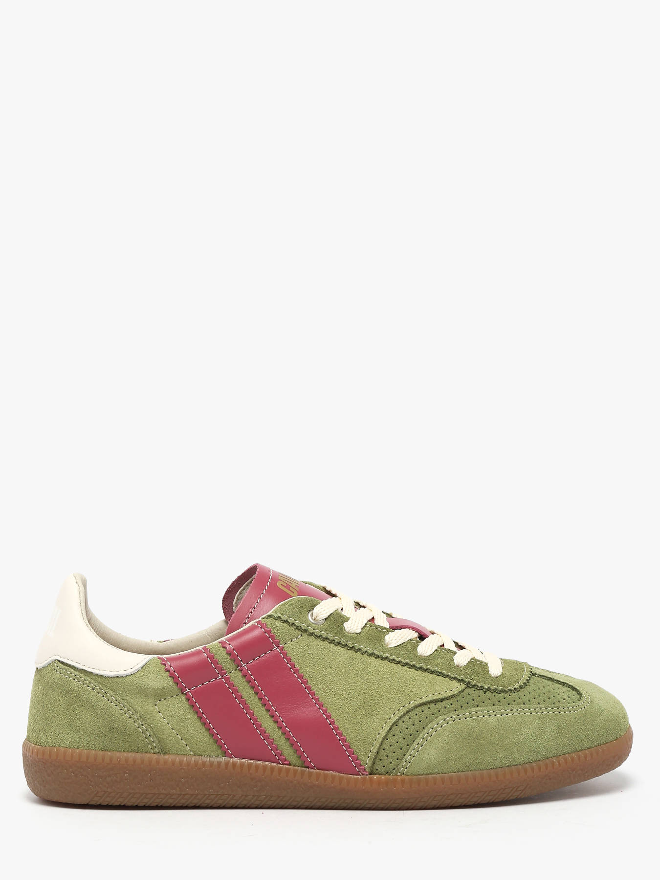 Caval’s Pulse Matcha Berry sneakers reinvent sportswear style with an elegant twist inspired by 90s handball shoes. Asymmetrical and unisex, they stand out with 7 unique differences to discover, a bold signature of the brand. Every detail matters: golf toe, perforated panel, brogue-style cut-outs, Strobel stitching, knitted laces, and sharp gum soles create a sophisticated retro-preppy look. Soft and flexible, they ensure outstanding everyday comfort. Entirely crafted in Europe using eco-responsible, traceable, and certified materials, they combine style with conscious production.