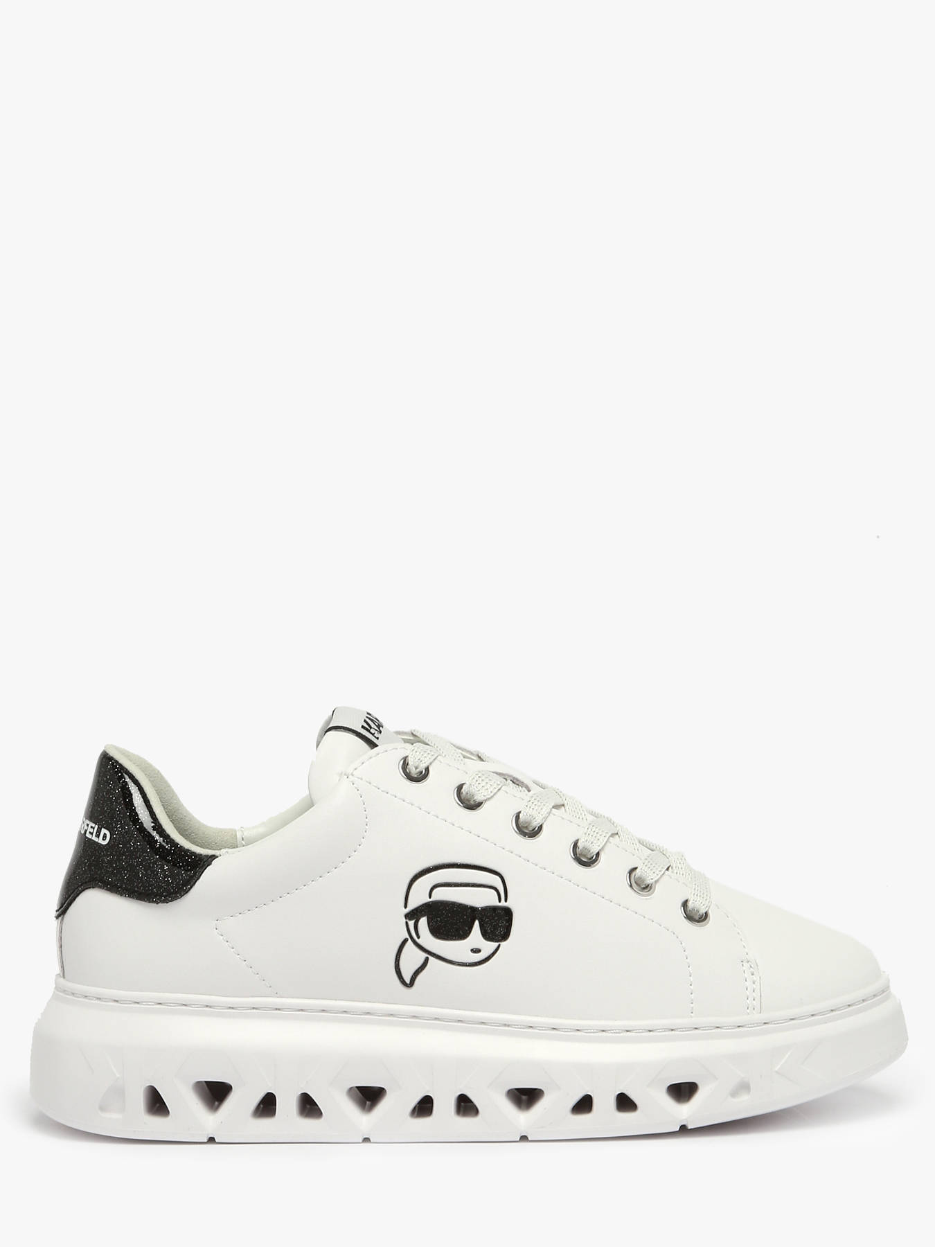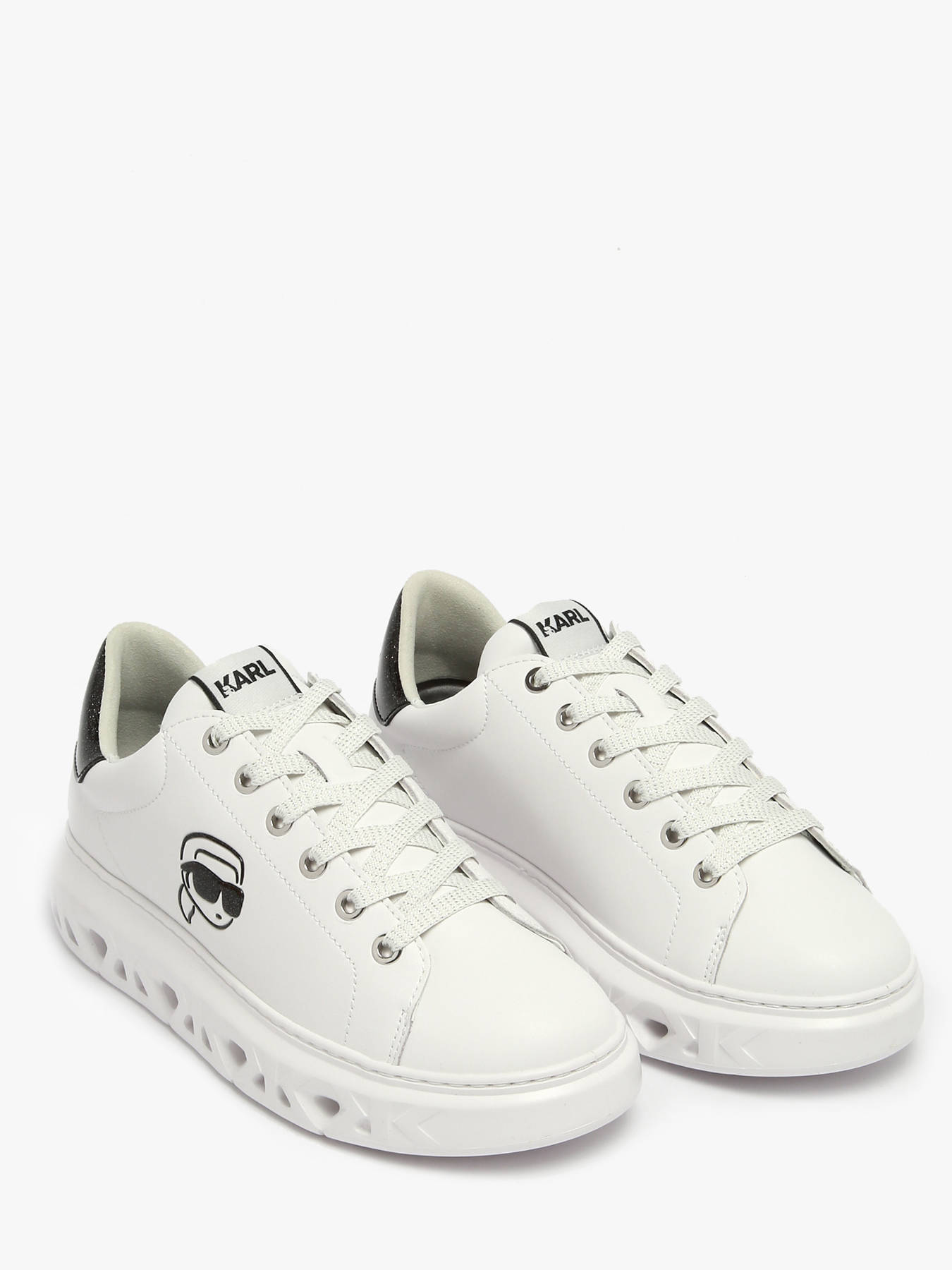 The KARL LAGERFELD KAPRI KITE OUTLINE NFT LO LACE sneakers captivate with their graphic aesthetic and contemporary style, blending simplicity with a strong visual identity; crafted with a smooth-finish leather upper, they offer a clean, elegant silhouette enhanced by the trendy contrast of black and white, while the lace-up fastening ensures precise support and the synthetic lining provides all-day comfort, complemented by a removable synthetic insole for personalized adjustment and easy care; perfect for a refined urban look, these sneakers combine quality, modernity, and comfort, fully embodying the bold and sophisticated spirit of the KARL LAGERFELD house.
