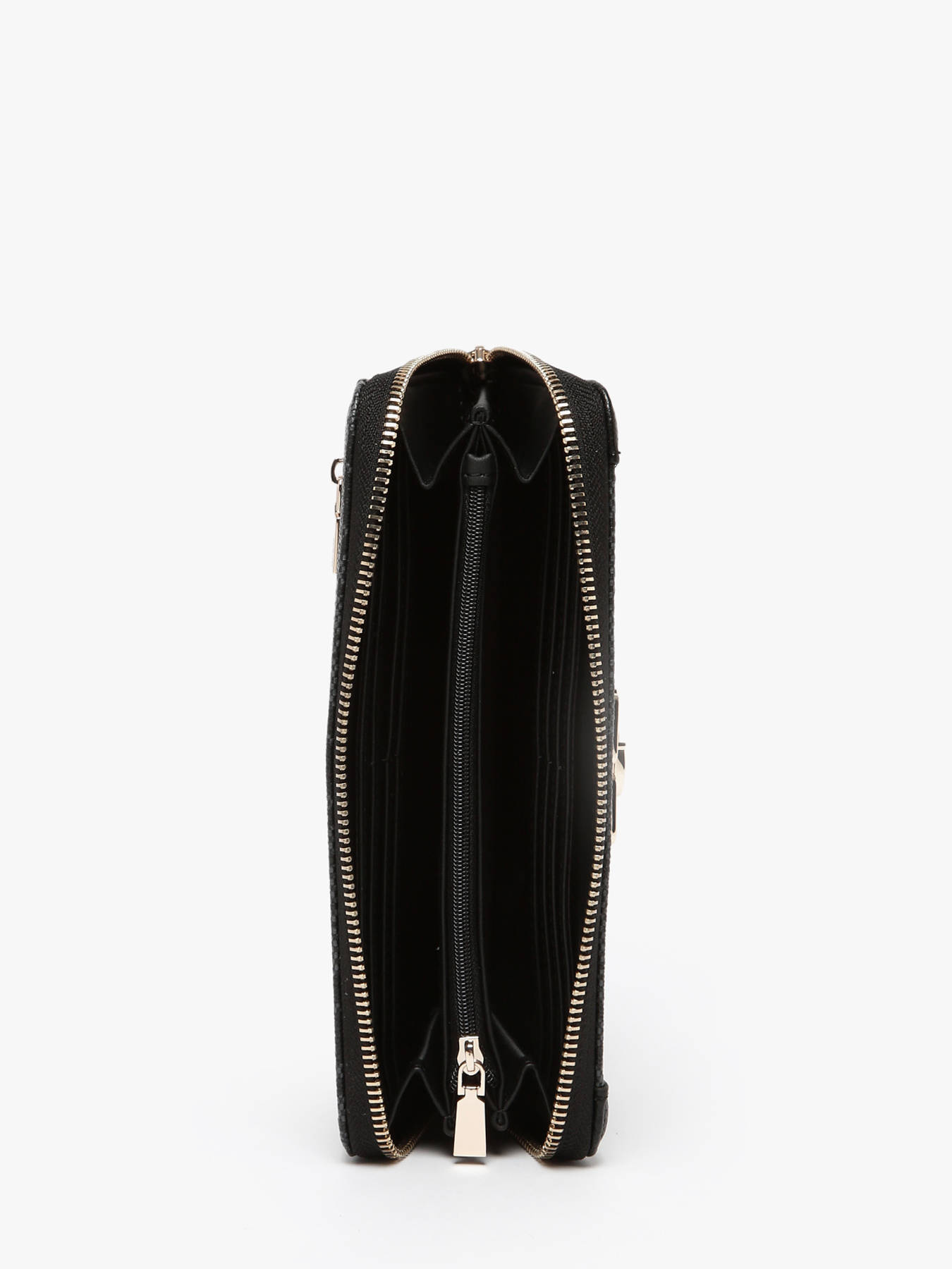 The GUESS wallet, made of P.U, combines elegance and functionality. On the outside, it features a zippered back pocket, perfect for securing small items. Its zip closure ensures optimal protection of your belongings. Inside, it offers four simple pockets for easy organization, twelve card slots to store all your cards, as well as an additional zippered pocket to keep coins or other small items secure. Compact and practical, this wallet is an essential accessory to combine style and efficiency daily.